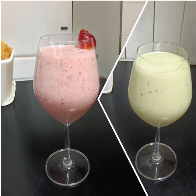 มีใครชอบดื่มบ้างคะ? วันนี้มีสมูทตี้สี่สหาย มาเสริ์ฟค่ะ 🍓🥝🍎🥑🥛🥤