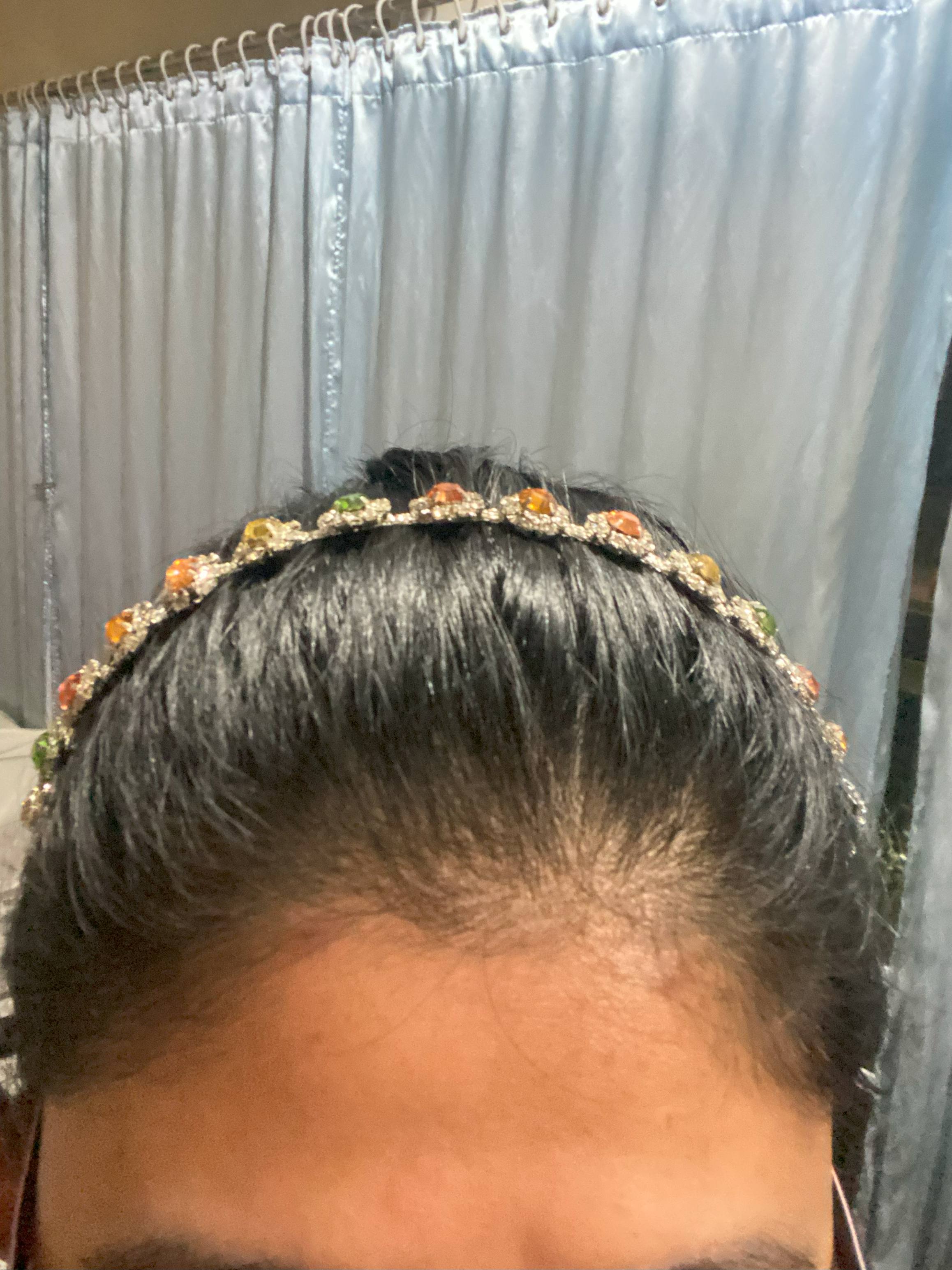 ใช้กาวร้อนติดลงบนที่คาดผม โดยเว้นปลายเล็กน้อยเพื่อไม่ให้บาดหนังศีรษะ