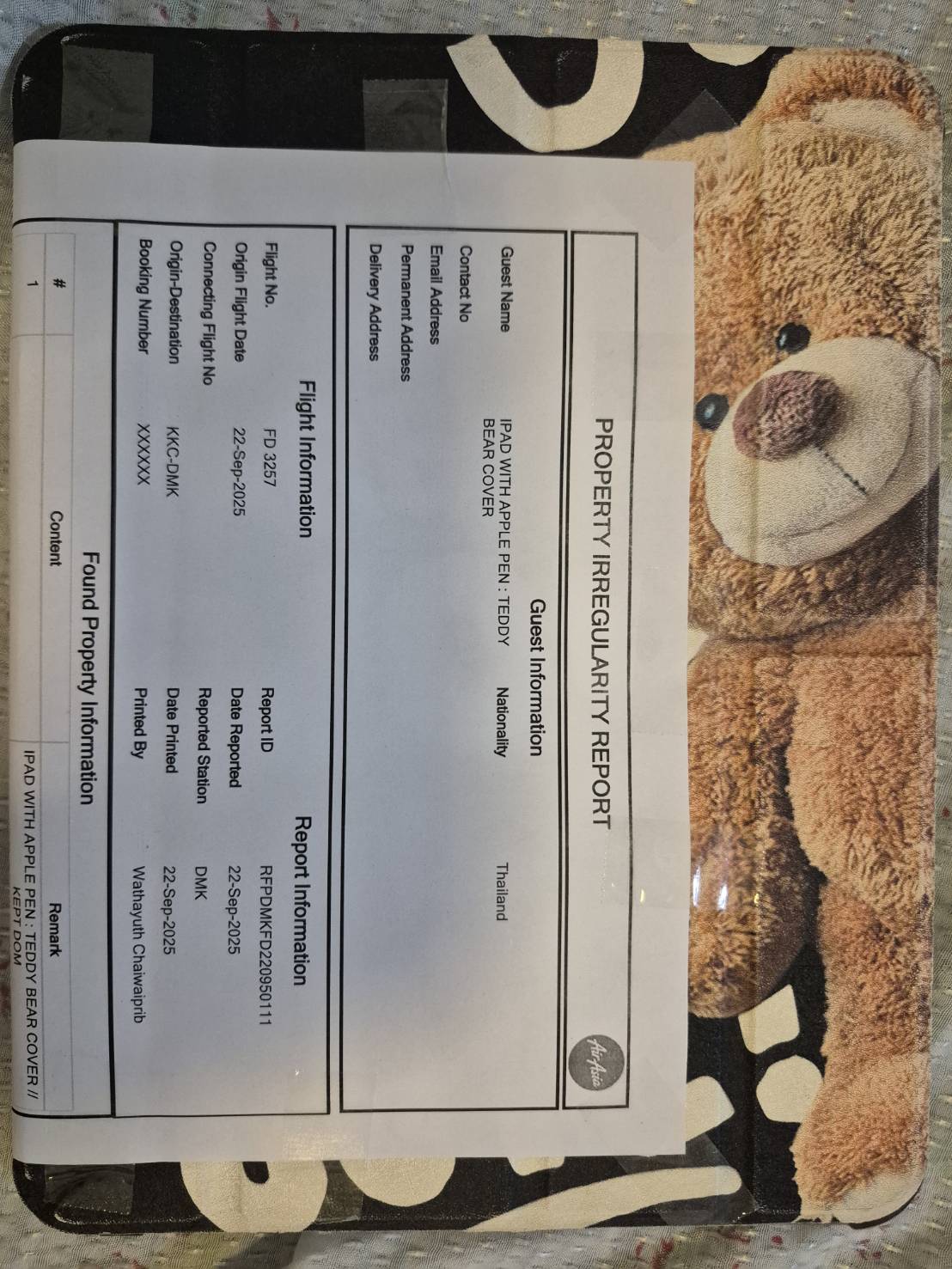 3. เราบินกลับมาดอนเมือง และเดินไปที่เค้าเตอร์ Lost & Found ของ AA ซึ่งอยู่ตรงสายพานรับของหมายเลข 9 แลกเปลี่ยนรหัส ทดลองให้สแกนหน้ายืนยันตัวตน รับของเรียบร้อย น้องบอกว่าจะเก็บของไว้ประมาณ 1 เดือน