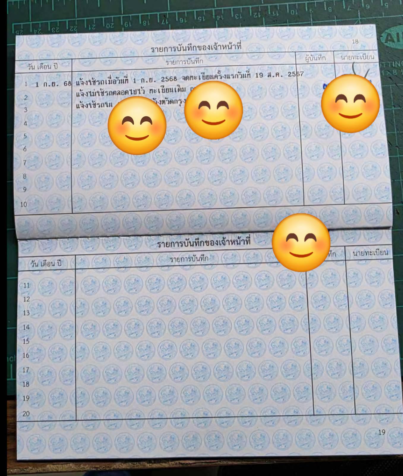 เมื่อวานได้ทำการต่อ พรบ ภาษี ที่เซเว่นอยากสอบถามว่าสมุดจดทะเบียนเล่มสีเขียวต้องบันทึกข้อมูลอะไรไหมครับพอดีตอนไปต่อที่เซเว่นใช้แค่สำเนารถที่เป็นกระดาษ a4 ครับ