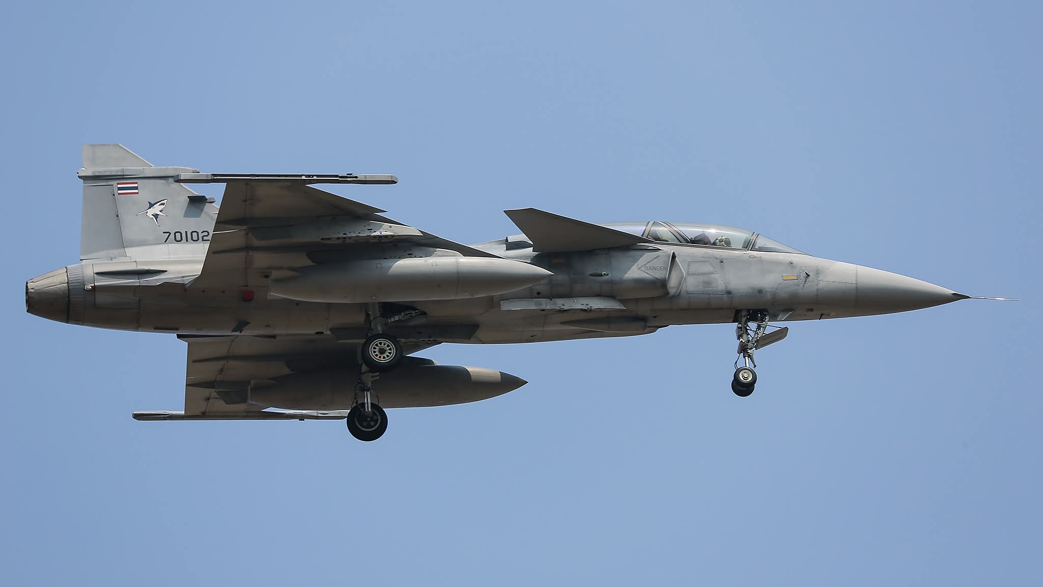 ธงชาติไทยบนแพนหางดิ่งของเครื่องบินขับไล่ GRIPEN