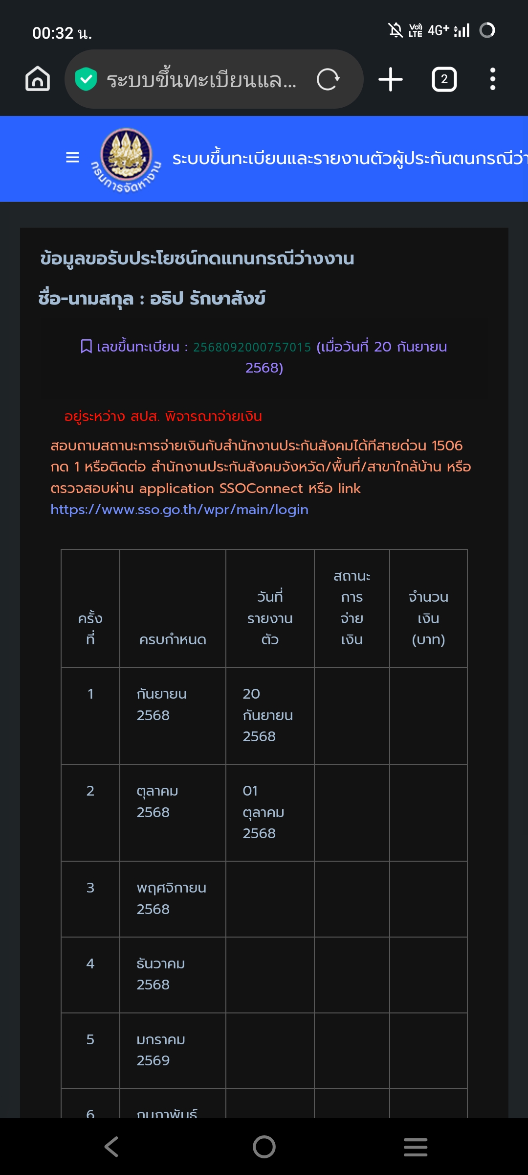 รายงานตัว 2 ครั้งแล้วเงินเข้าตอนไหน