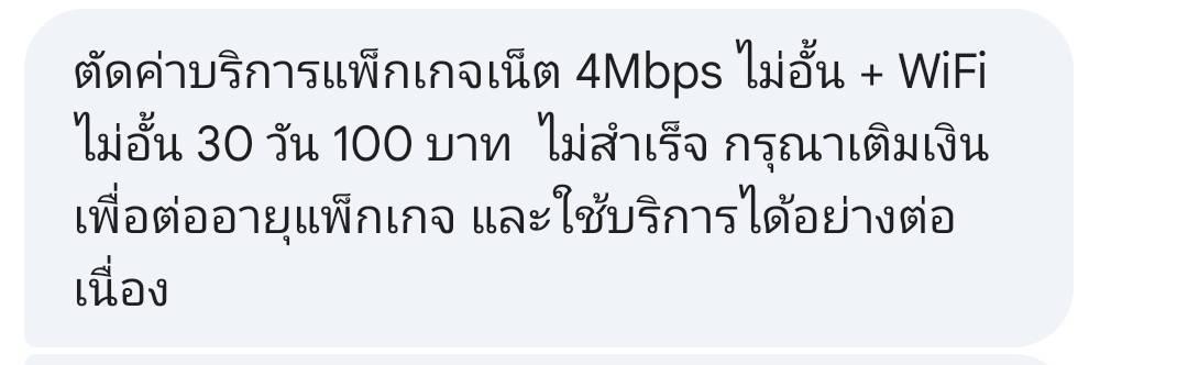 และนี่คือสิ่งที่สวนทางกับทางบริษัทมันทุกประการผมมีข้อความแจ้งว่ามันจะต่อแต่เป็นแบบสิ่งที่ผมเล่าไว้ด้านบนคือระบบมันเอ๋อไม่ต่อ พอเติมเงินไปยอดก็น่าจะท่วมเราก็แบบโอเครนานเป็นทีช่างมันเดี๋ยวคงตัดสุดท้ายจากตอนนั้นถึงตอนนี้เงินผมจะหมดซิมละครับ