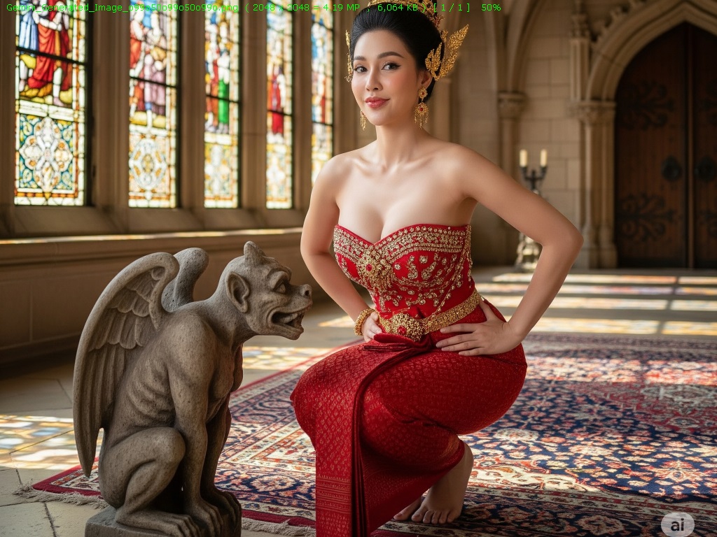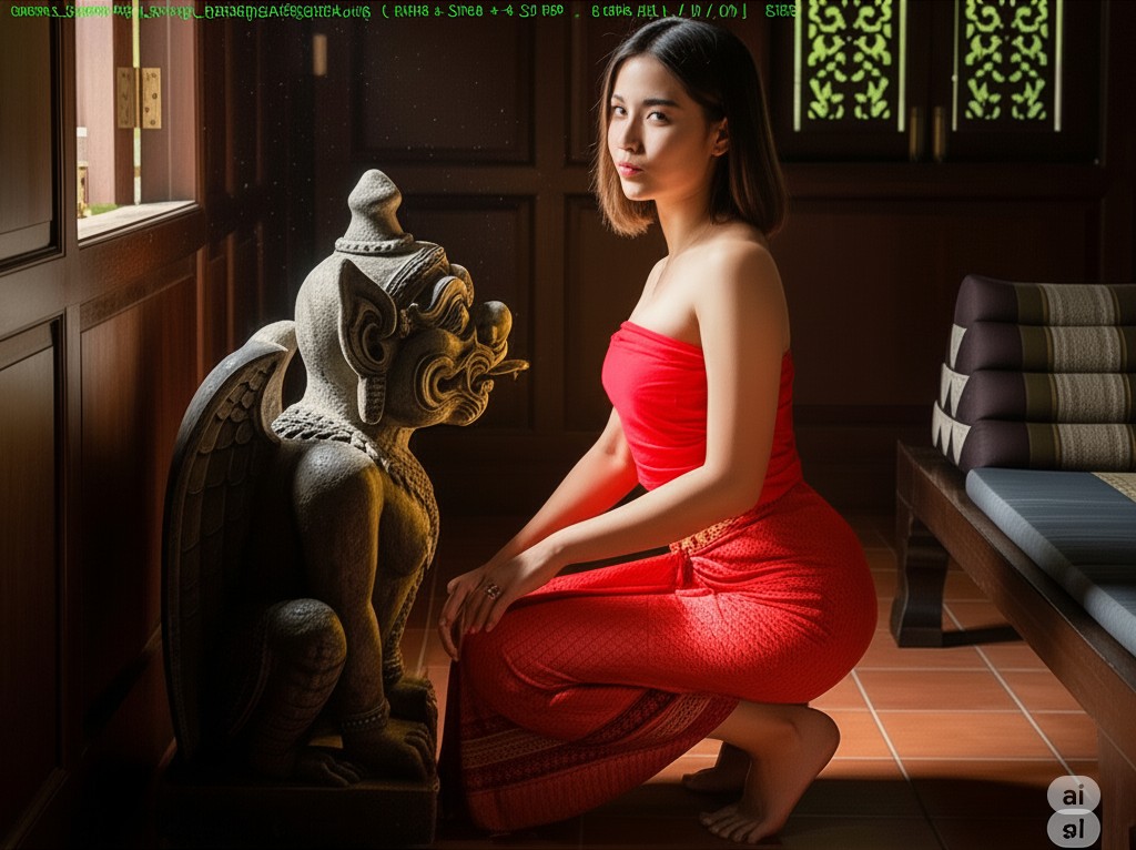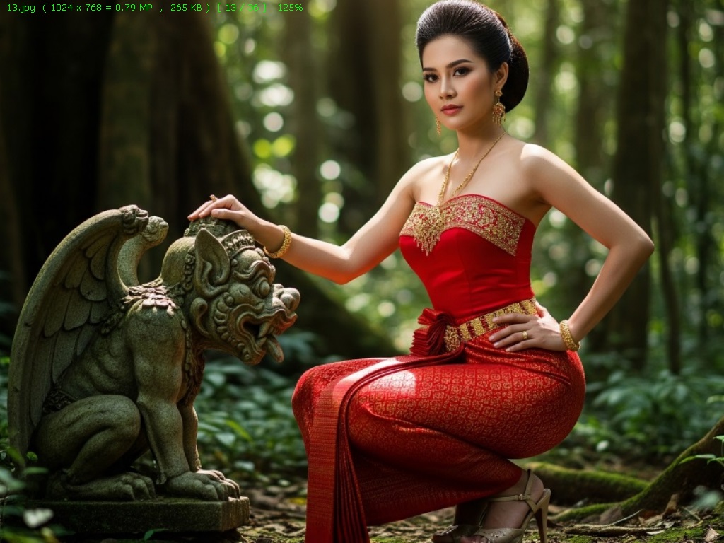 คอลเล็ทชั่น สาวงามกับชุดไทยสีชมพูและรูปปั้นการืกอยล์ของผมจ๊ะ