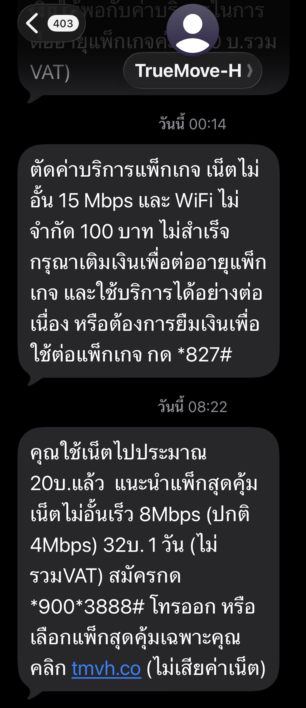 TrueMove ไม่ต่ออายุเน็ตอัตโนมัติอ้างยอดเงินไม่พอ หรือต้องการให้ลูกค้าเปลี่ยนโปรราคาแพงขึ้น