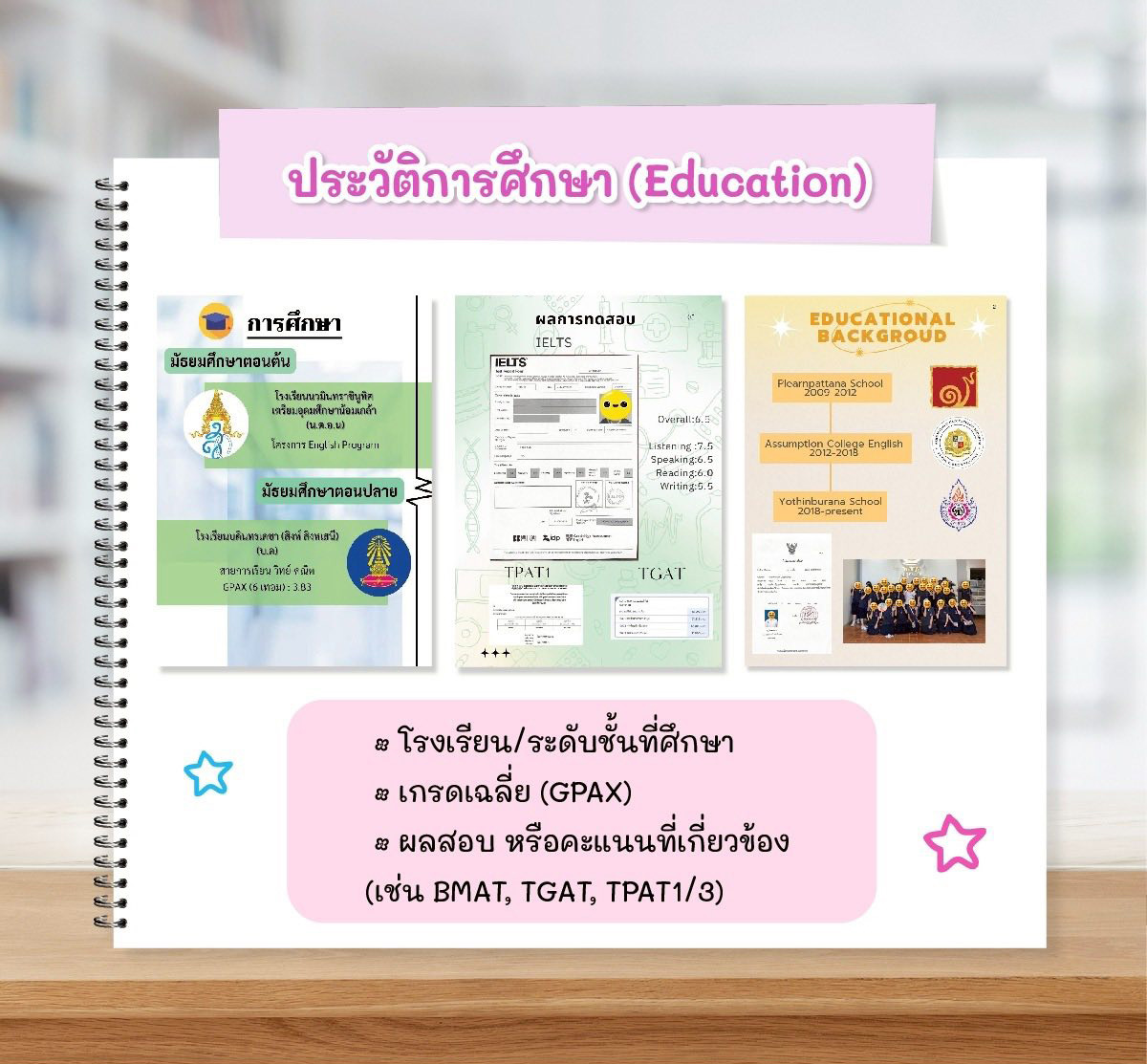 - ประวัติส่วนตัว + แรงบันดาลใจที่อยากเป็นแพทย์