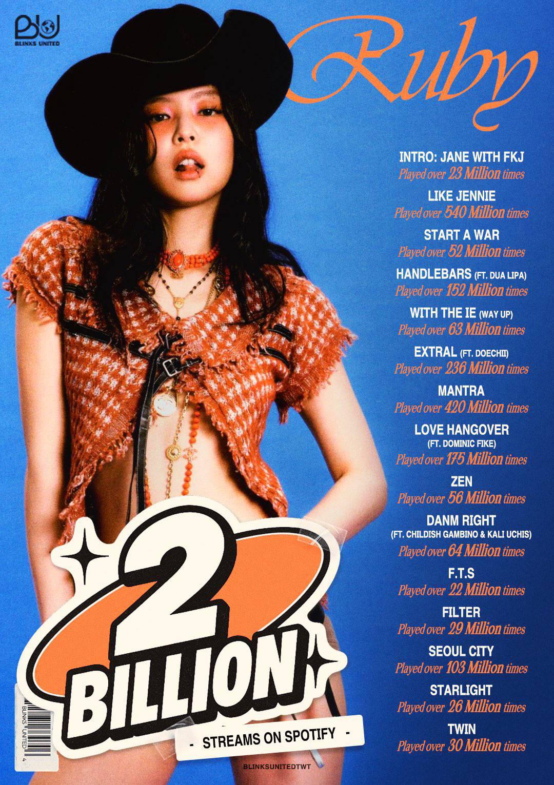 อัลบั้ม “Ruby” ของเจนนี่มียอดสตรีมบน Spotify ทะลุ 2 พันล้านครั้ง กลายเป็นอัลบั้มแรกของศิลปิน K-POP ที่ทำได้ในปีนี้ 🥳
