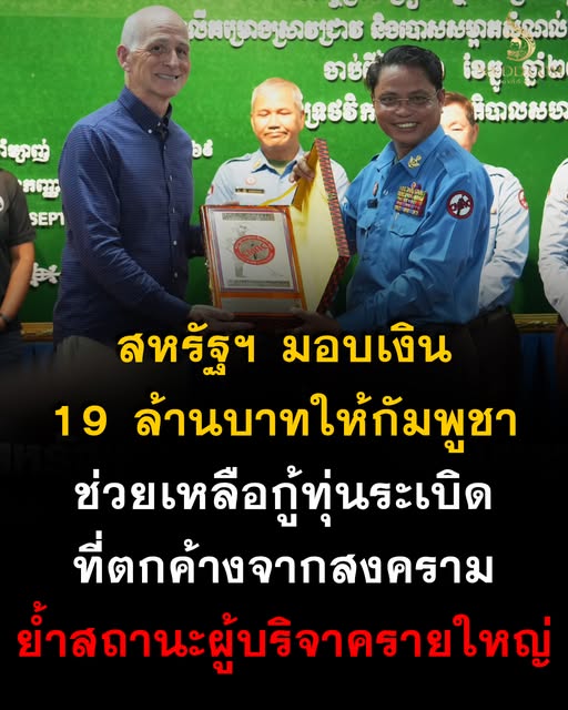 สหรัฐฯ มอบเงิน 19 ล้านบาทให้กัมพูชา ช่วยเหลือปฏิบัติการกู้ทุ่นระเบิดที่ตกค้างจากสงคราม เป็นระยะเวลา 5 เดือน ตอกย้ำสถานะเป็นผู้บริจาครายใหญ่