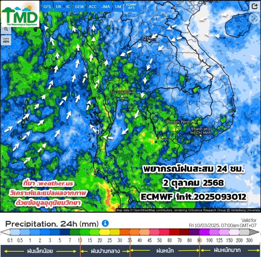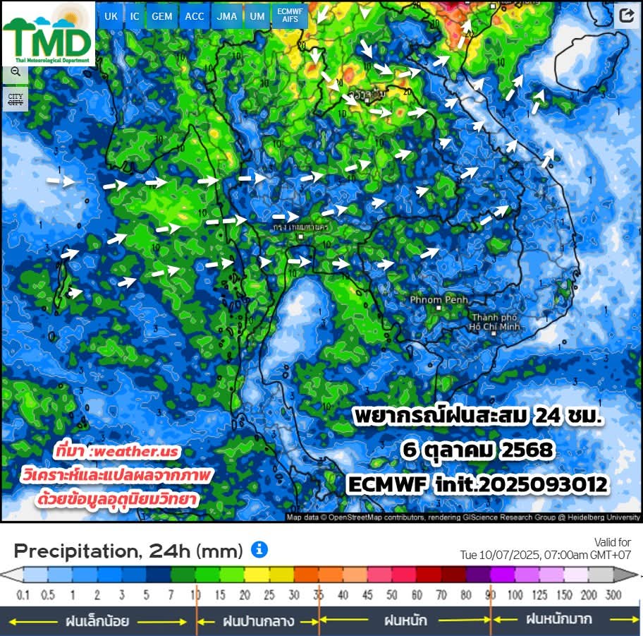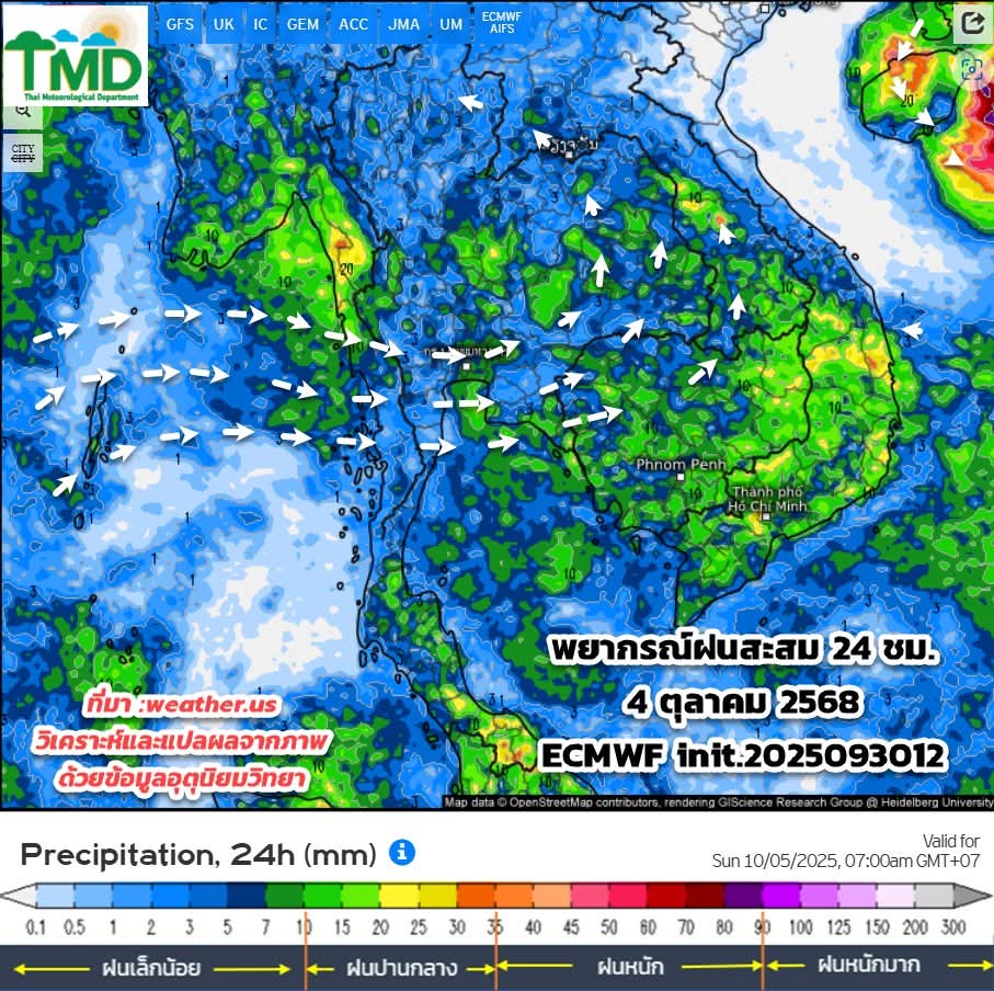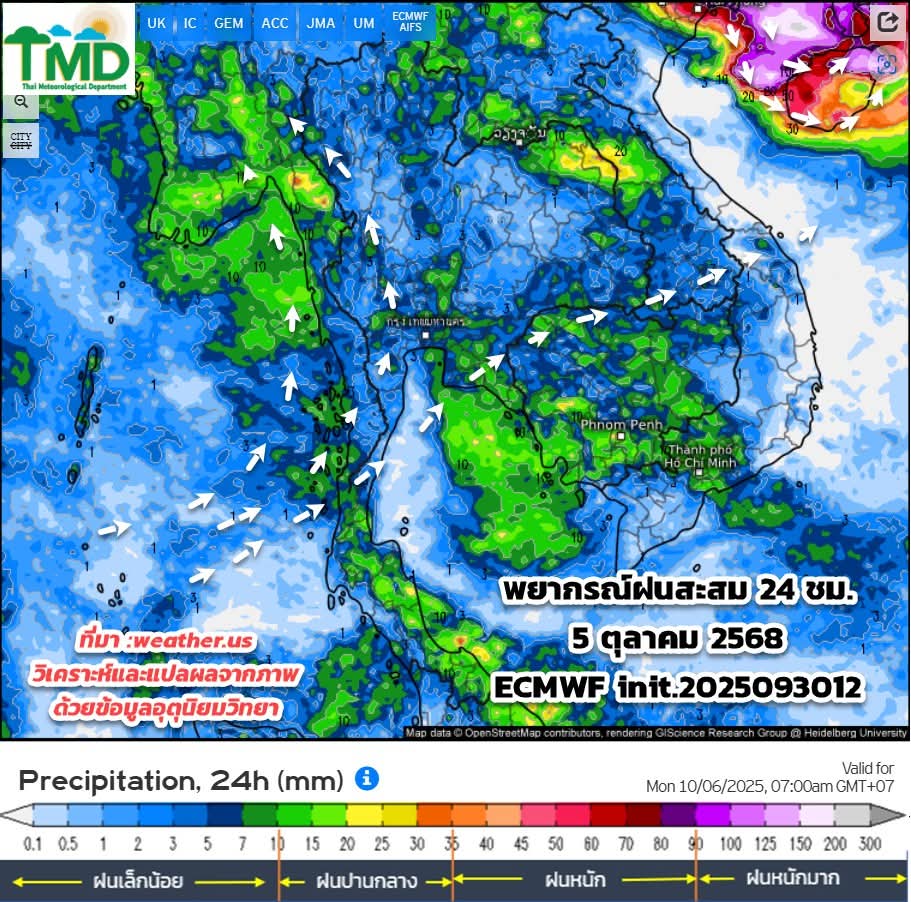 ส่วนช่วงวันที่5-6ต.ค. 68 มีหย่อมความกดอากาศต่ำบริเวณทะเลจีนใต้ตอนบน มีแนวโน้มจะเคลื่อนตัวเข้าสู่ประเทศจีนตอนใต้ ไม่เคลื่อนเข้าสู่ประเทศไทย ไม่น่ากังวล