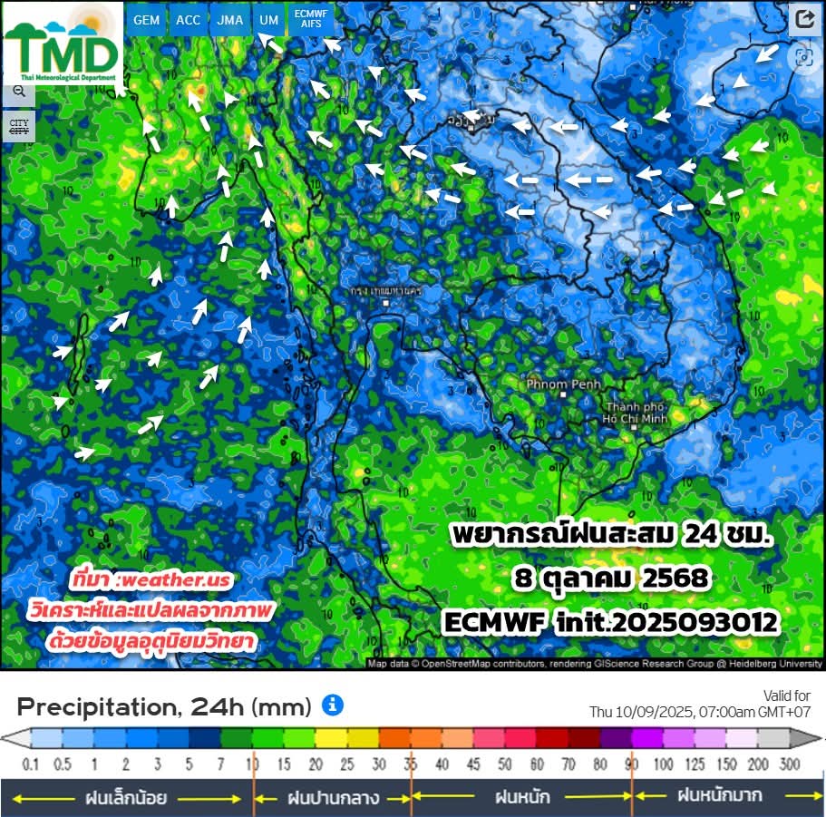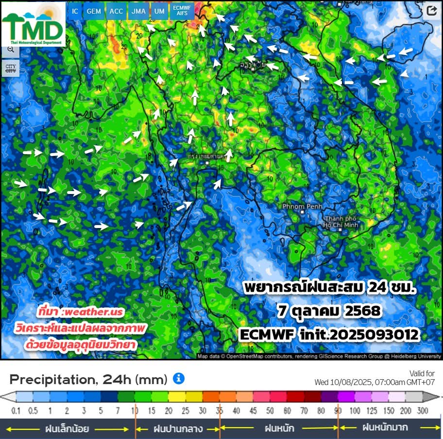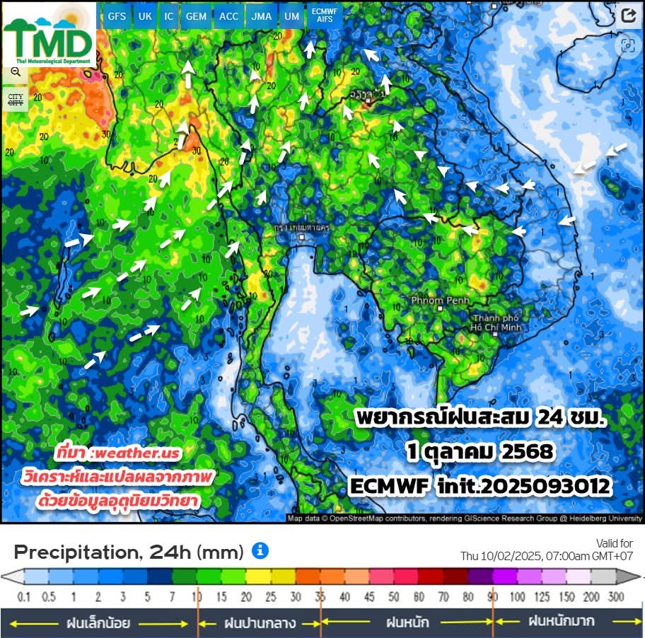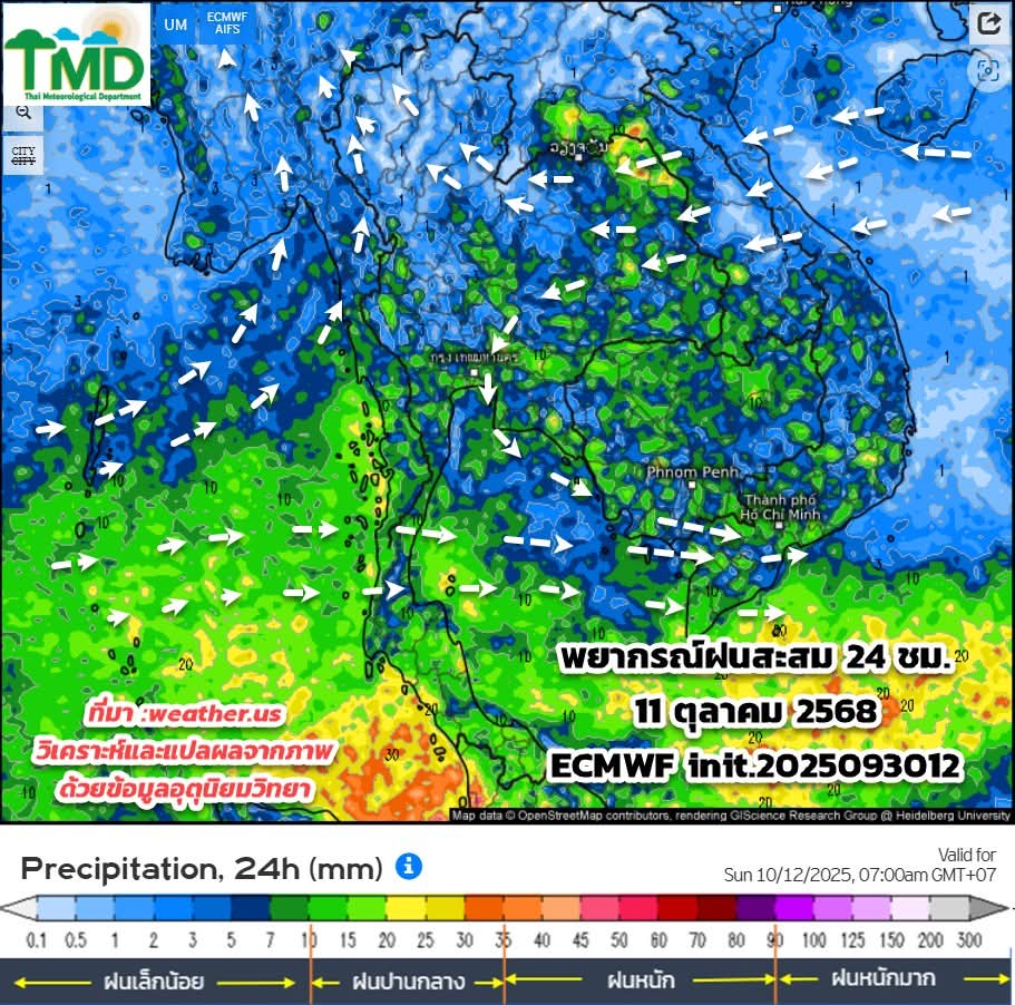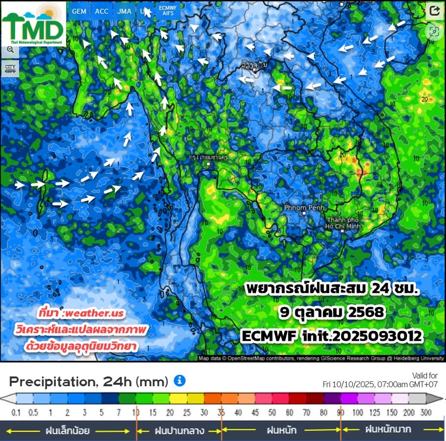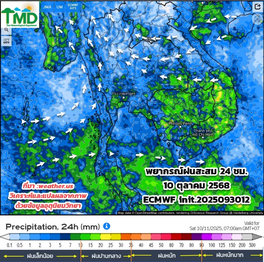 สำหรับช่วงตั้งแต่วันที่10ต.ค. 68 เริ่มมีสัญญาณของลมเปลี่ยนทิศทางเป็นลมตะวันออก ตะวันออกเฉียงเหนือมากขึ้น บ่งชี้เริ่มจะมีมวลอากาศเย็นแผ่ลงมา แต่ช่วงนี้ยังเป็นช่วงเปลี่ยนผ่านฤดู วันเดียวอาจมีทั้งฝน ทั้งอากาศเย็นตอนเช้า อากาศร้อนตอนกลางวันได้ ทิศทางลมแปรปรวน ต้องระมัดระวังรักษาสุขภาพ (ข้อมูลยังมีการเปลี่ยนแปลง ใช้ข้อมูลนี้เพื่อเป็นแนวทางในการเฝ้าระวังติดตามสภาพอากาศจะได้ไม่ตื่นตระหนกกับข่าวลือ)