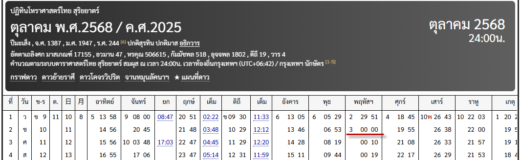- วันที่ 8 พฤศิกายน 2568 ดาวพฤหัสเดินพักร์(มีอักษร พ หลังเลข 3) เดินพักร์คือเดินถอยหลัง พฤหัสจะค่อยๆส่งผลกับดวง แบบลดลงจากเดิมที่เคยเป็นก่อนหน้านั้น แต่ก็ยังถือว่าok ดีอยู่