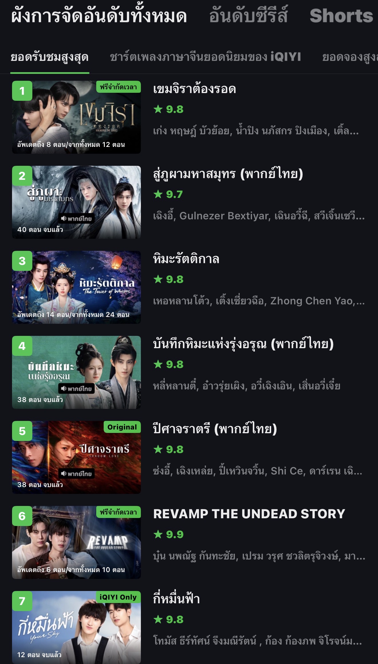 1 ตุลาคม 68 เขมจิรา ต้องรอด ยังครองอันดับ1 ในแอป iqyi. เวลาที่เจอ 12:00