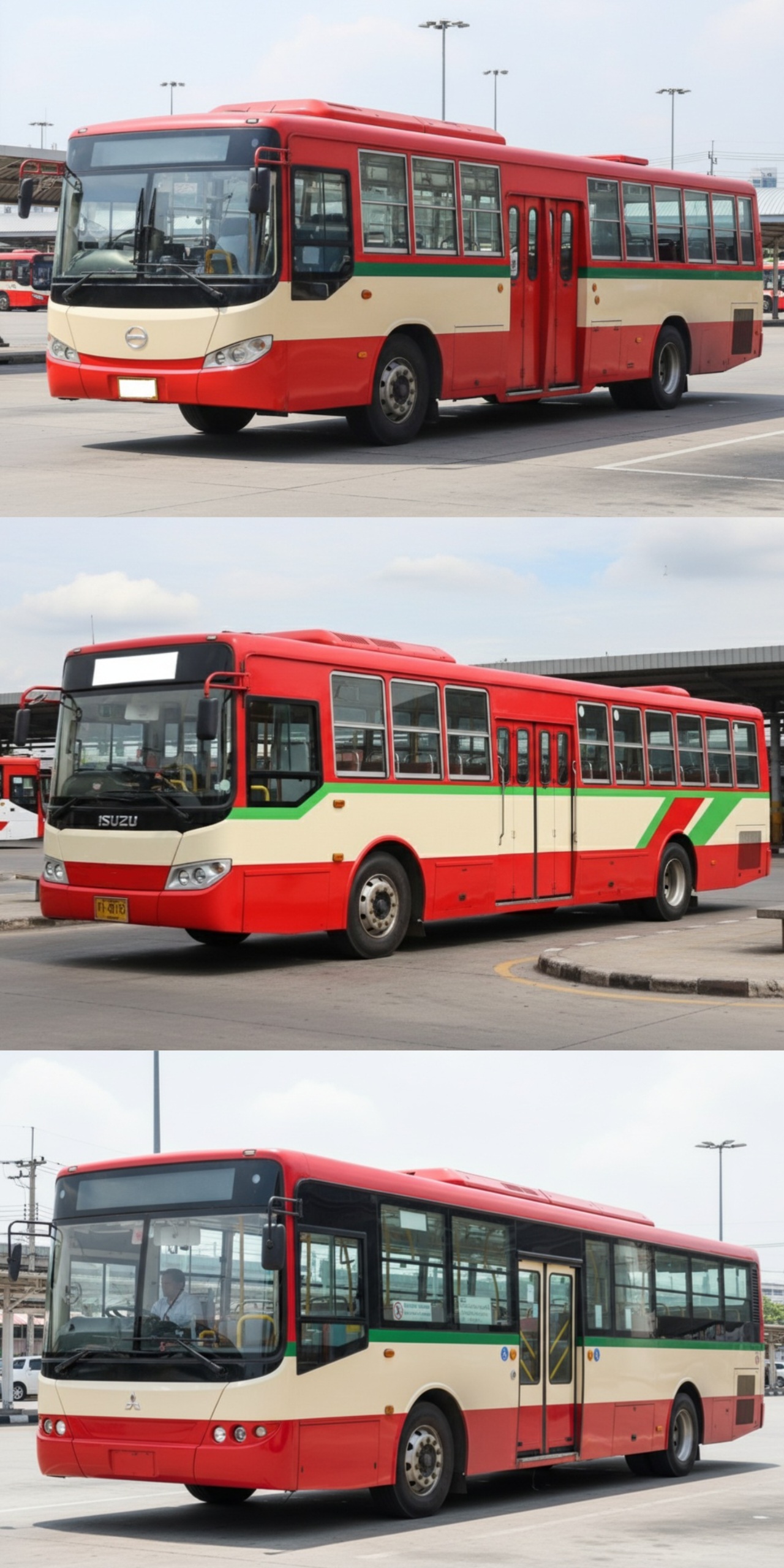 หลังจากที่อนุมัติโครงการเช่ารถเมล์ไฟฟ้า 1,520 คัน ก็พอจะรู้ชะตากรรมของรถเมล์แดงแล้วว่าอีกไม่เกิน 1 ปีนี้รถเมล์แดงจะหายไปจากถนน แล้วบวกกับว่ามีคนแซวว่าระหว่างนี้อาจจะเอารถเมล์แดงไปดัดแปลงเป็นรถเมล์ไฟฟ้าแล้ววิ่งใหม่ ผมเลยลองเอารถเมล์แดงทั้ง 3 ยี่ห้อที่วิ่งอยู่มาลองดัดแปลงเป็นรถเมล์ไฟฟ้าด้วย AI โดยที่ยังเป็นรถร้อนเหมือนเดิม แต่รู้สึกเหมือนความยาวรถจะสั้นลงไปหน่อยนึง