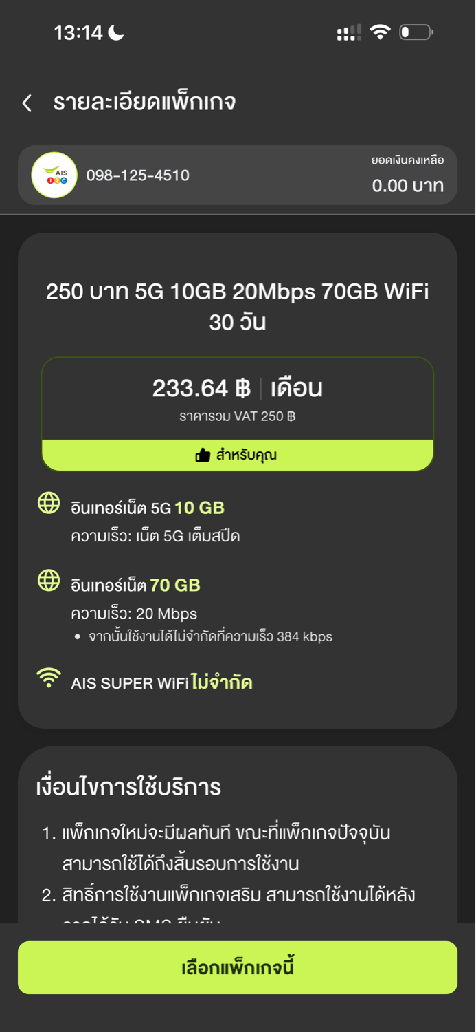 ทำไมเติมเน็ตais 200ผ่านธนาคารแต่กลายเป็นชำระแพ็คเกจ110วัน