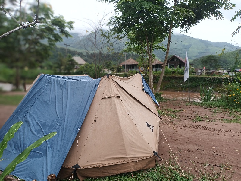 เมื่อคืนที่สะปันลานวิว ฝนตกทั้งวันจนถึงเช้าวันนี้เลย ตกไม่หนักมาก ไม่มีลม ทำให้ในเต็นท์นอนฟังเสียงฝนกระทบ Bushcraft ทั้งคืน เบาดังตามแรงฝน เป็นเสียงที่ทำให้มีความสุขที่ Bushcraft เราสามารถกันฝนได้ทั้งด้านบนที่มีทาร์ปอีกผืนและด้านล่างที่มีพลาสติกปูรองพื้นเต็นท์ที่เคลือบกันน้ำเสื่อมแล้ว