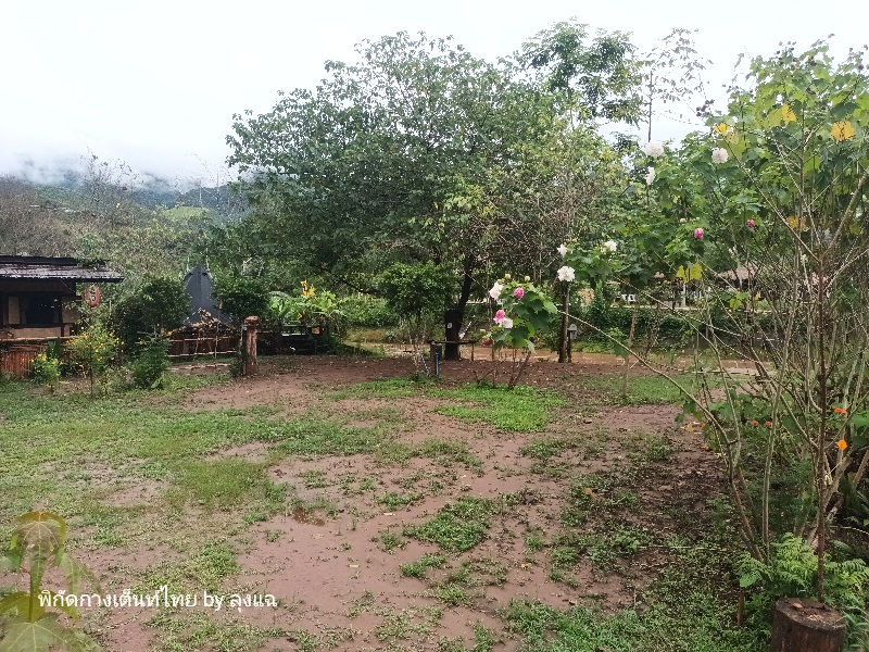 จนท.ออกมาต้อนรับ ผมติดต่อมาก่อนแล้ว น้องพาดูจุดกาง ขอห่างริมน้ำไว้ก่อน เลือกติดรั้วไม้ดอก ใกล้รถจอดไม่เกิน 10 ม.เอง
