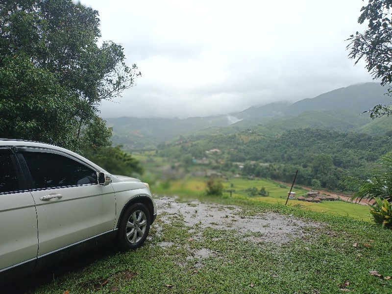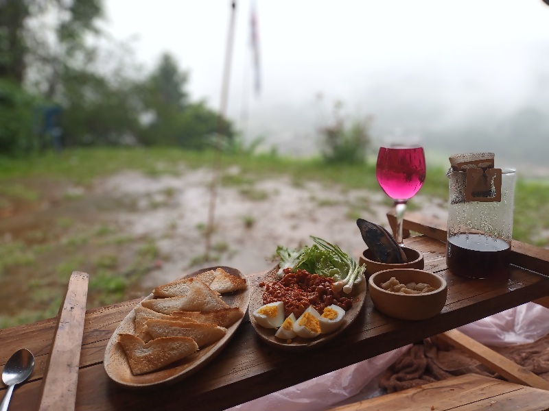 เตรียมมื้อเช้าราวครึ่งชม.ก็เสร็จ นั่งกินพร้อมชมสายฝนที่ตกลงมา สมใจที่เรียกร้อง เจอฝนตั้งแต่ตอนมาจนถึงตอนนี้ เพิ่งหยุดไปเอง