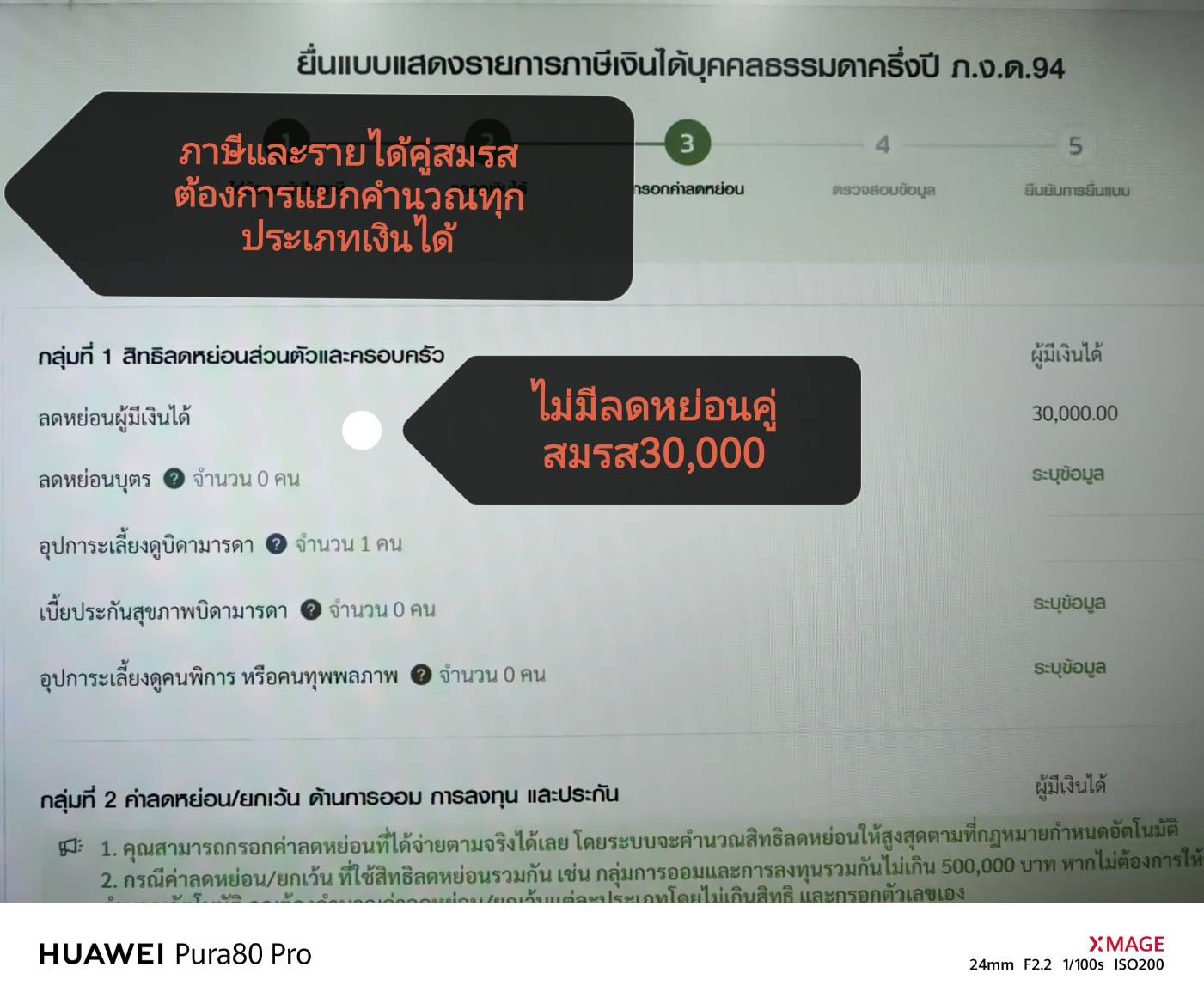 หัวข้อ ภาษีและรายได้ของคู่สมรส ถ้าเราเลือก ต้องการแยกคำนวณทุกประเภทเงินได้ บทสรุปคือ เราจะไม่ได้สิทธิหักลดหย่อนคู่สมรส 30000 บาท