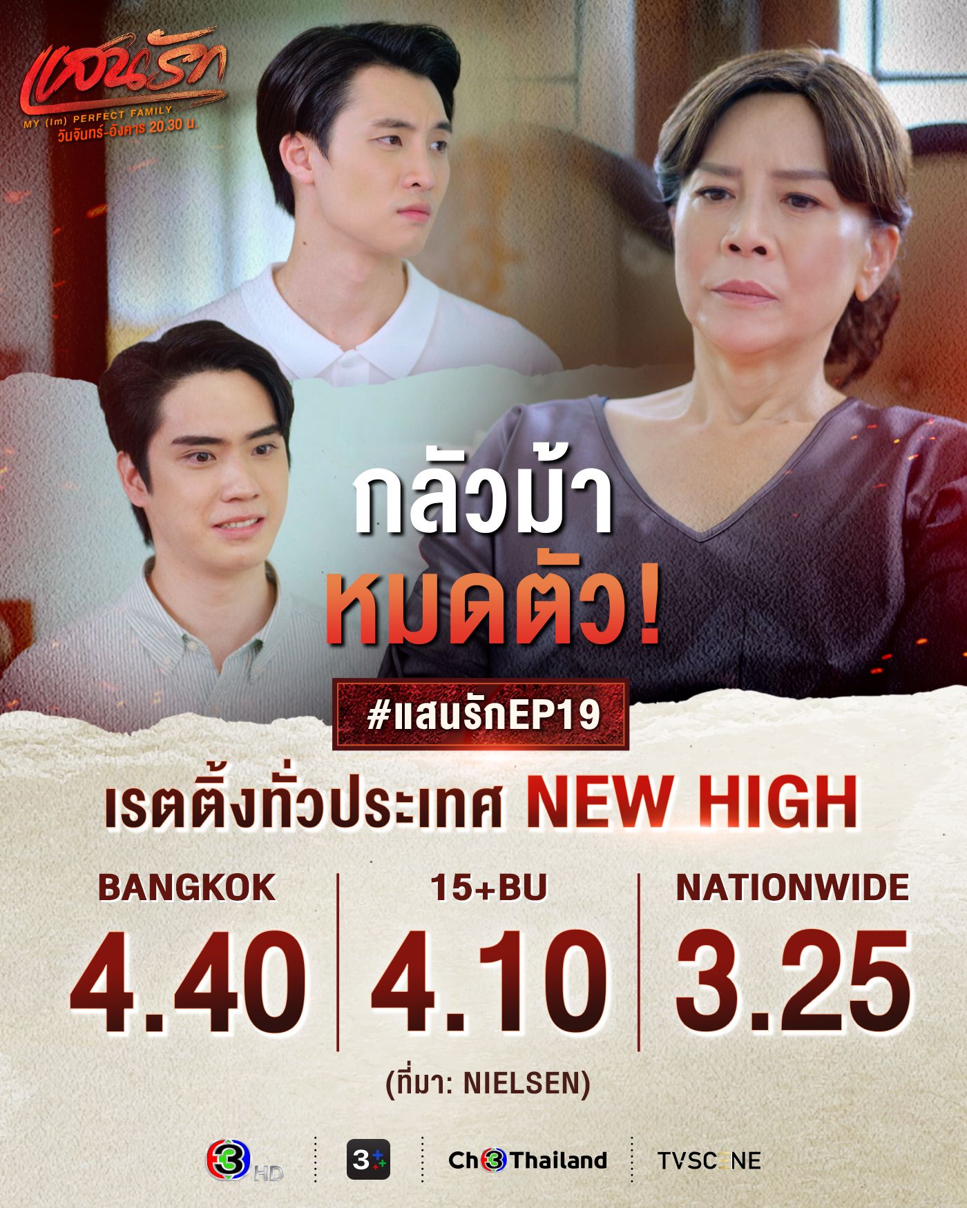 📌 เรตติ้งละคร "แสนรัก" EP.19 เรตติ้งกรุงเทพฯ 4.40 / เรตติ้ง 15+ BU 4.10 / เรตติ้งทั่วประเทศ 3.25 New High !!! 🎉