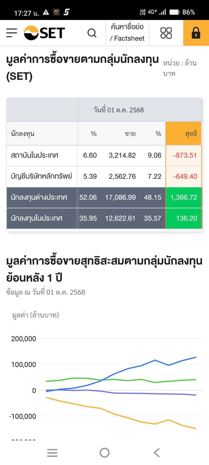 Sinthorn Summary 1/10/2568 : ต่างชาติซื้อสุทธิ 1,386.72 ลบ.
