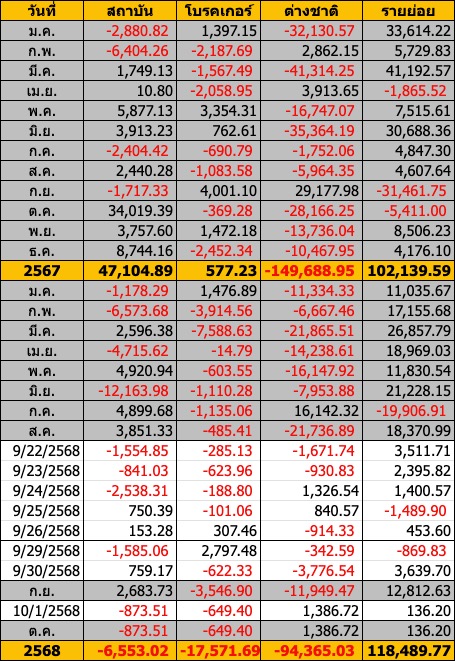 Sinthorn Summary 30/9/2568 : ต่างชาติขายสุทธิ -3,776.54 ลบ.