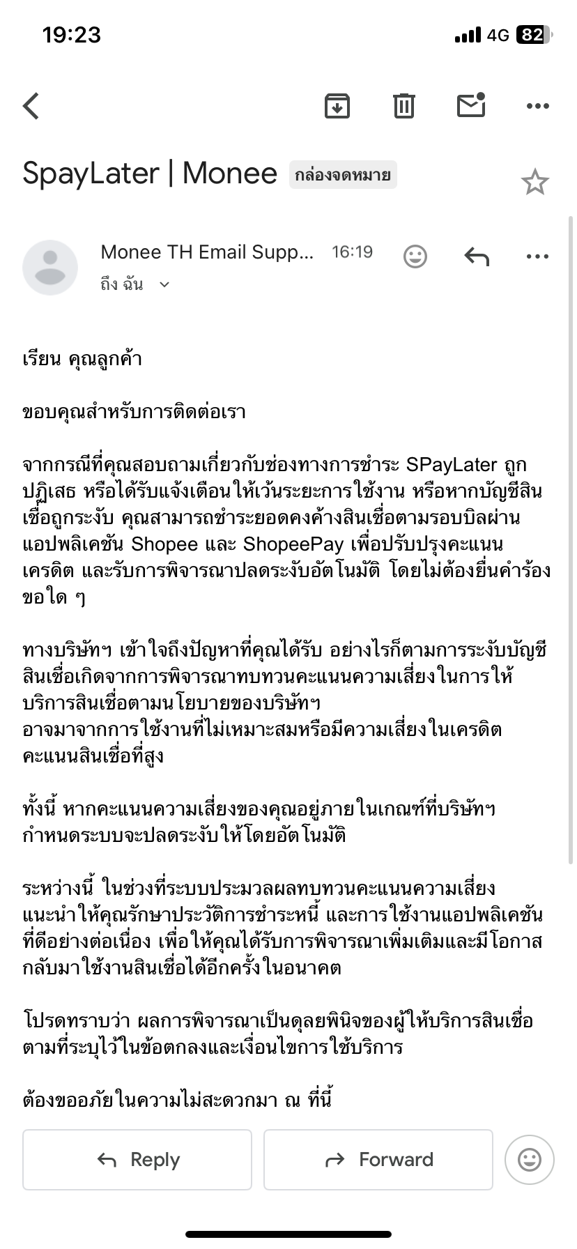 ชำระยอด shopee spaylater ไปเรียบร้อยแล้ว แต่ระบบยังโชว์ไม่ชำระ จ่ายไปตั้งแต่ 4 วัน ก่อน ถามไปในแอพ shopee ก็บอกติดต่อฝ่ายสินเชื่อ อีเมลไปก็ไม่ตอบ ลูกค้าจ่ายตรงแล้วมีปัญหา แก้ไขได้ยุ่งยากจังนะคะ ติดต่อ