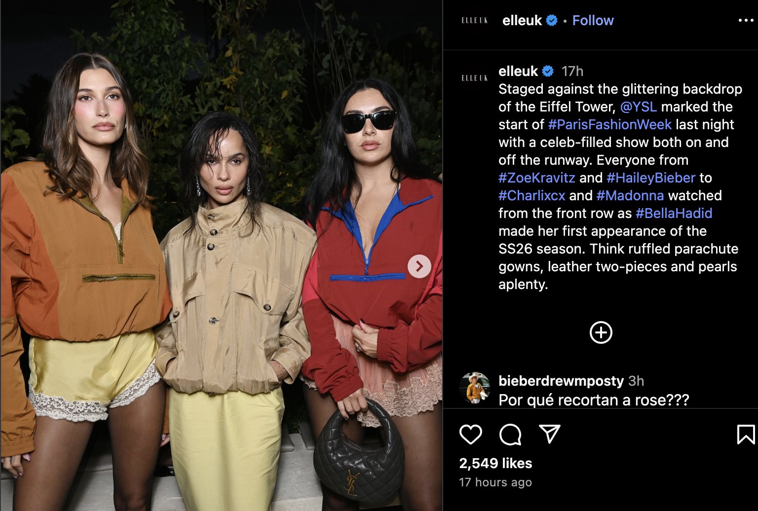 อย่างไรก็ตาม บัญชีอินสตาแกรมของนิตยสารแฟชั่นอังกฤษ Elle UK ได้โพสต์รูปภาพที่ไม่มีโรเซ่เลย