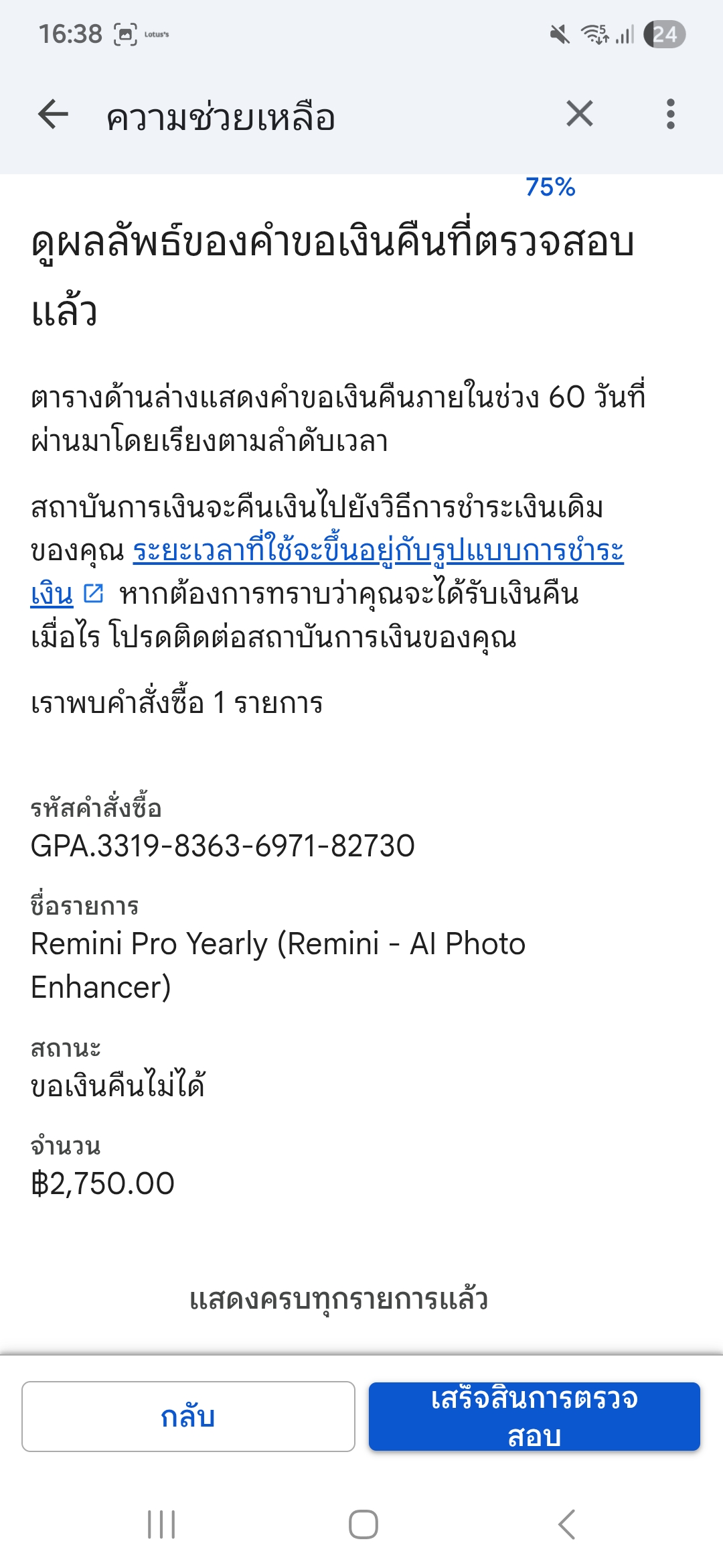 แอพหักเงินในบัญชีทำไมถึงขอเงินคืนแล้วถูก Google Play ปฏิเสธ คะ