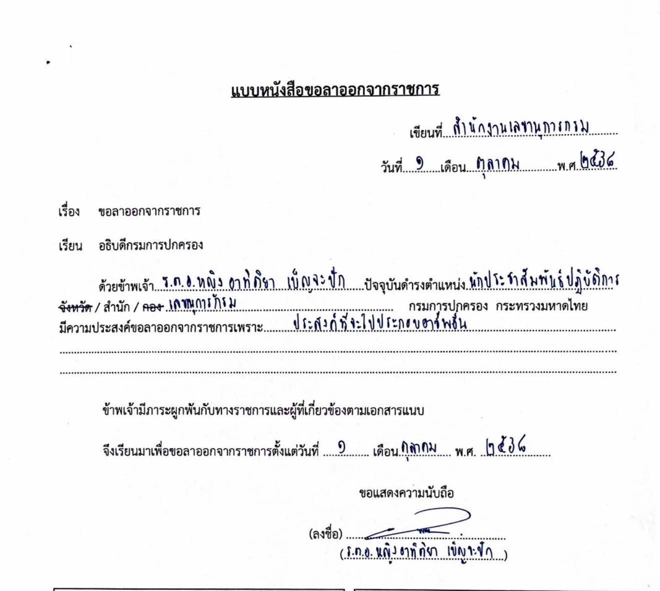 “ผู้กองแคท อาทิติยา เบ็ญจะปัก” นักประชาสัมพันธ์ปฏิบัติการ ยื่นหนังสือลาออกจากราชการ แจ้งประสงค์ไปทำอาชีพอื่น ขณะนี้หนังสืออยู่ระหว่างการพิจารณาของอธิบดีกรมการปกครอง