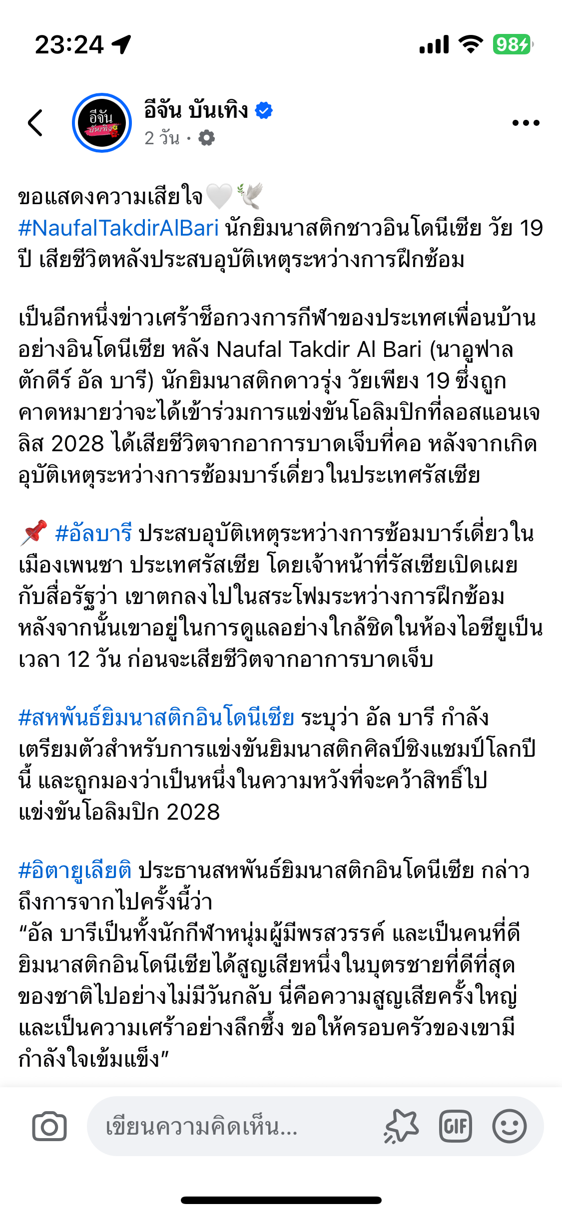 ข่าวเศร้าของวงการยิมนาสติกโลก นักยิมนาสติกอิเหนาเสียชีวิตในวัยเพียงแค่ 19 ปีเท่านั้น !!! 😭