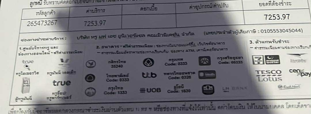 จ่ายบิลทรูตัดเงินในบัญชีแล้ว แต่บิลยังขึ้นยอดค้างชำระอยู่