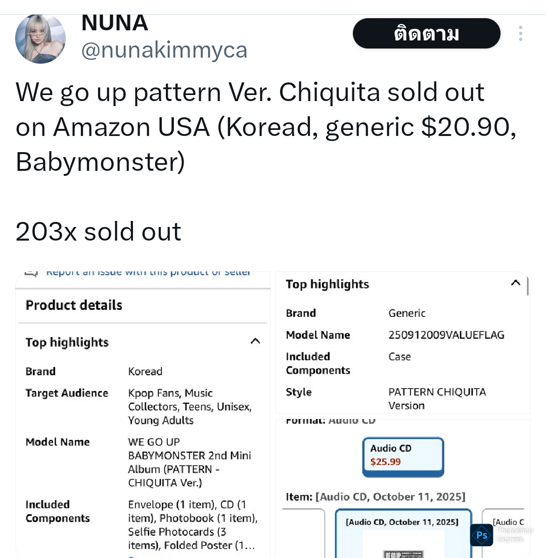 อัลบั้ม BABYMONSTER - 2nd MINI ALBUM [WE GO UP] CHIQUITA Version ขณะนี้ได้ทำ Sold Out ไปแล้วถึง 203 รอบ ตามมาติดๆ ด้วย AHYEON