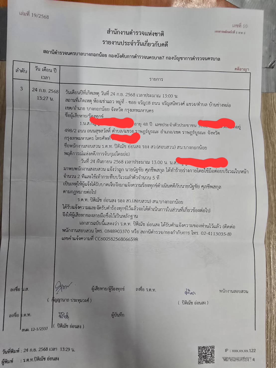 ไปแจ้งความเพื่อดำเนินคดี ตำรวจเขียนแบบนี้ ถูกต้องไหมคะ