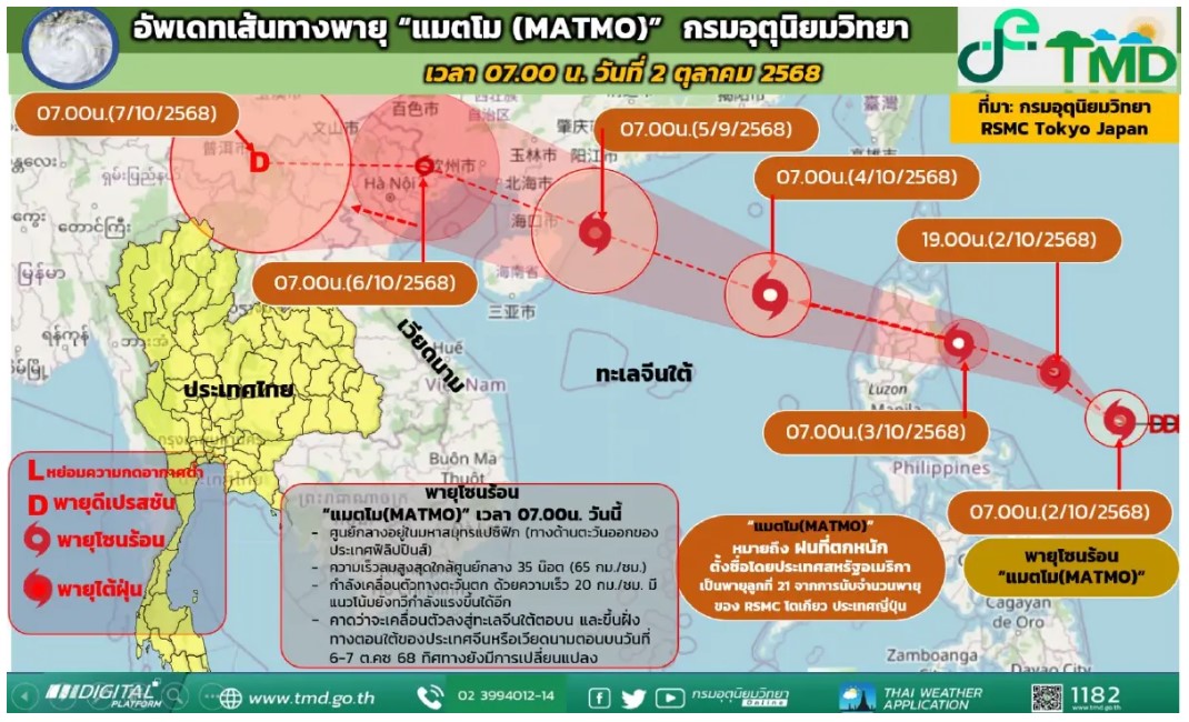 “แมตโม” จ่อถล่มฟิลิปปินส์ ก่อนมุ่งขึ้นฝั่งจีน 5-6 ต.ค.นี้ อุตุฯย้ำชัดไม่เข้าไทยแน่นอน