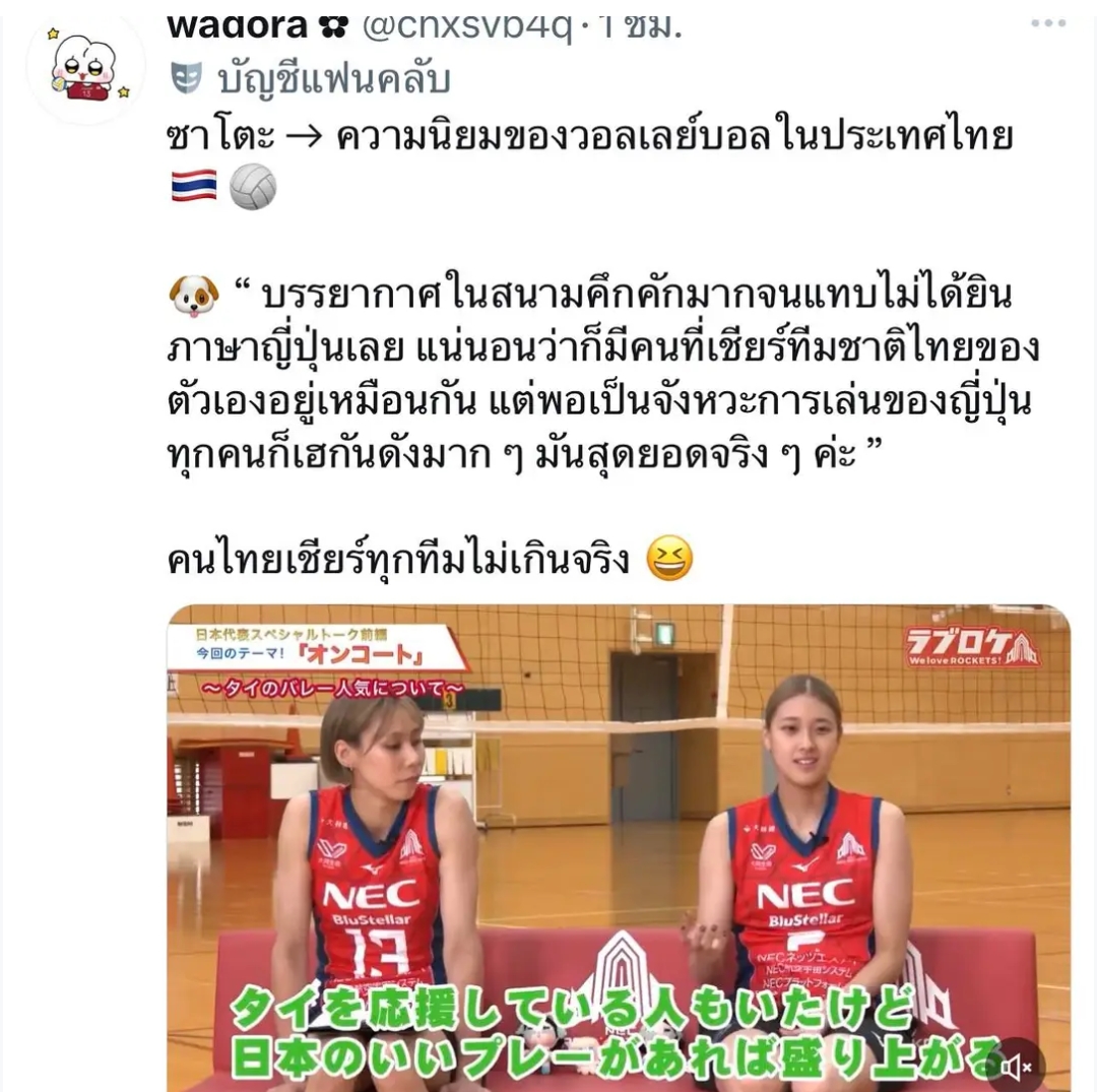 โยชิโนะ ซาโตะ ได้พูดถึงความนิยมวอลเลย์บอลของประเทศไทย😍😍😍😍
