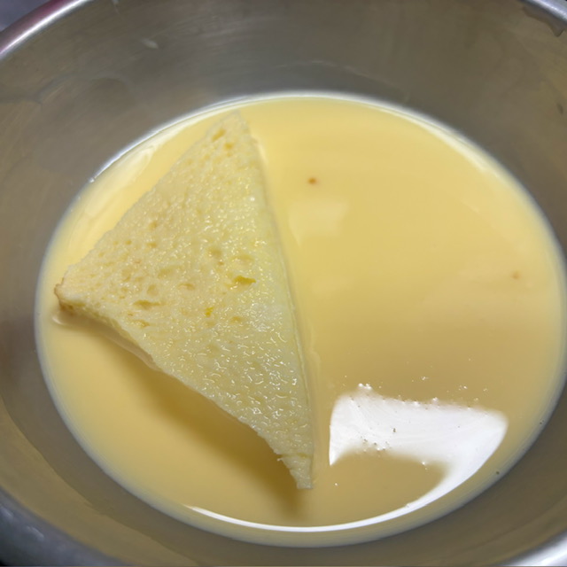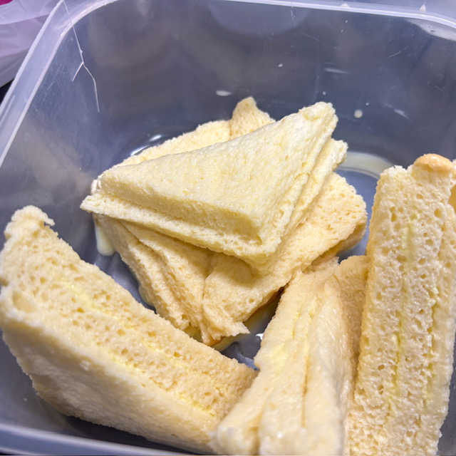และนำขนมปังลงไปจุ่ม และเก็บใส่กล่องรอตอนเช้า