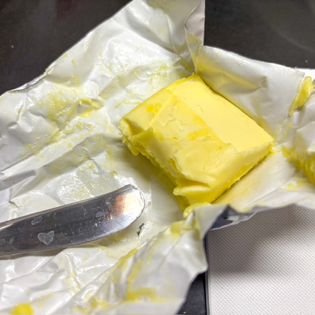 เตรียมกะทะใส่เนยลงไป แล้วเตรียมขนมปังที่อบเสร็จวางแผ่นชีสทั้งสองฝั่งเลย