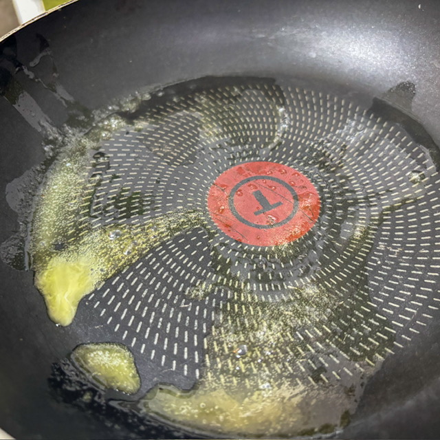 เอาลงจี่ไฟเบา คือการเอาชีสลงกับกะทะแบบนี้อาจจะต้องรอให้เค้าขึ้นเกรียมๆ ออกสีแบบนี้ เพื่อให้พลิกกลับได้ง่าย
