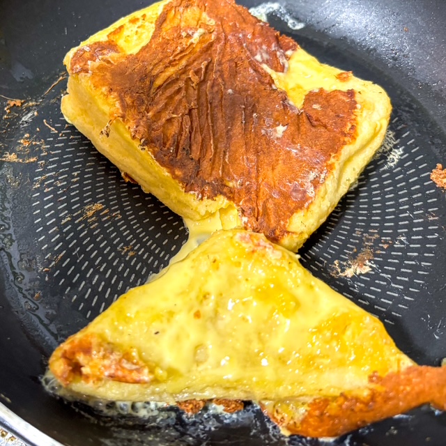 อาจจะดูไม่สวย แต่รับรองว่านุ่มนวล ฉ่ำ และชีสเต็มๆ ชีสที่โดนย่างตรงๆแบบนี้ ไม่เหมือนกับที่มันละลายอยู่แค่ในขนมปัง