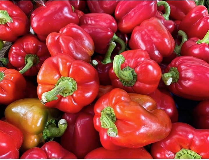 พริกหวานแดงมีโพแทสเซียมต่ำและอุดมไปด้วยวิตามินซีสูง ซึ่งช่วยเสริมภูมิคุ้มกันและต้านอนุมูลอิสระได้ดี อีกทั้งยังมีวิตามินเอ