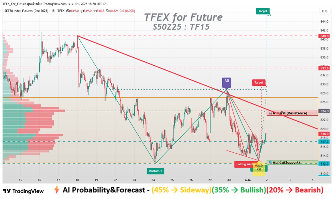 🔹 35% → Bullish Break 824 → ลุ้น test 833–842