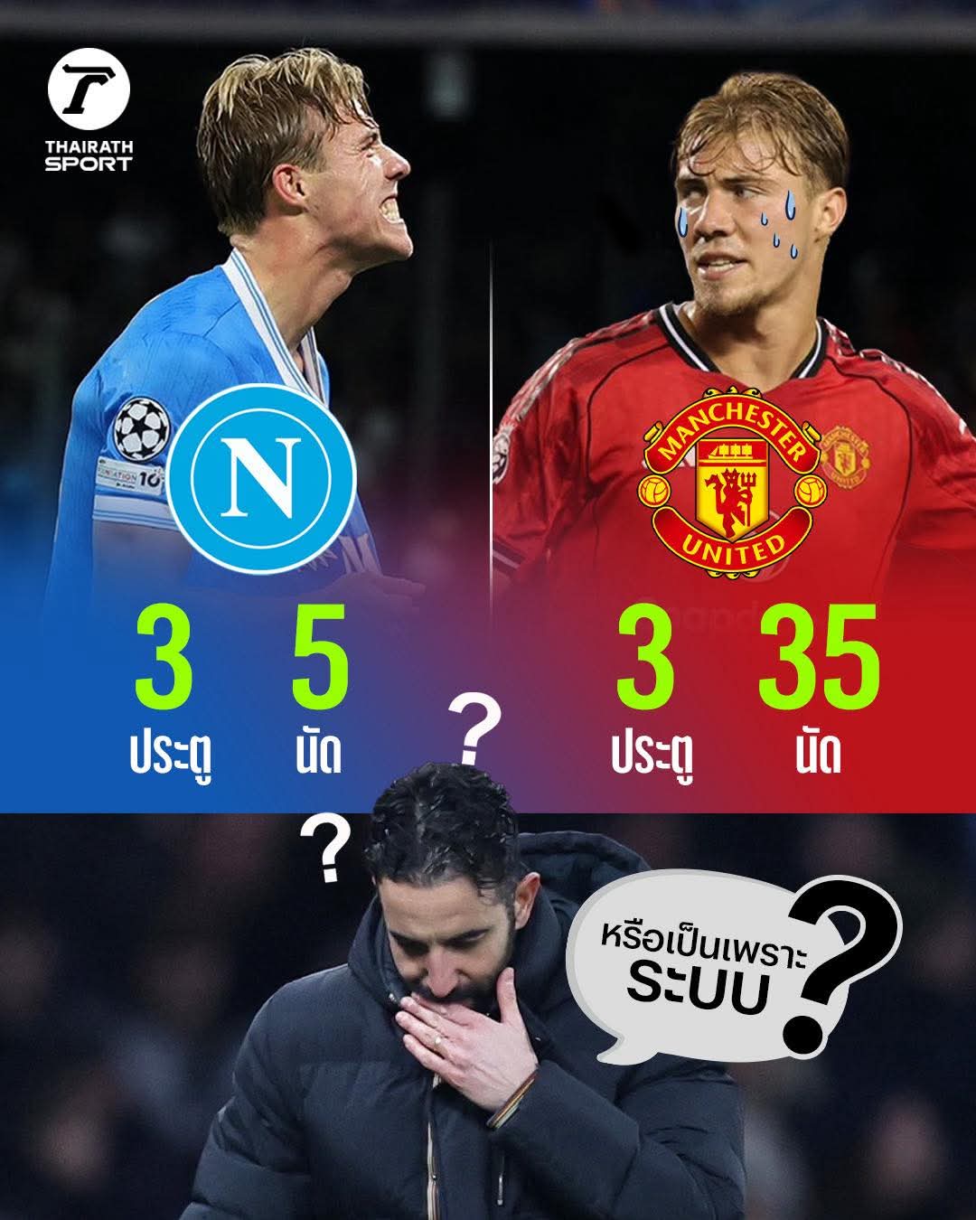 เทียบผลงาน "ราสมุส ฮอยลุนด์" ในสีเสื้อ "นาโปลี" กับ "แมนเชสเตอร์ ยูไนเต็ด" มีบางอย่างต่างกันเยอะ