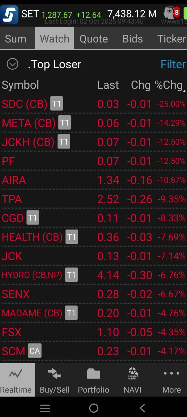 เปิดโดดเลยครับ Set เปิดตลาด วันที่ 2-10-2025 1,288.83 จุด +13.80 (+1.08%)