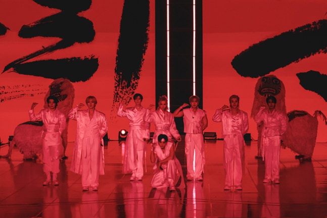 Stray Kids ปรากฏตัวพร้อมอินโทรสุดยิ่งใหญ่ที่ผสมผสานดนตรีดั้งเดิม ก่อนโชว์เพลงฮิต “Thunderous (소리꾼)” และ “God’s Menu (神메뉴)” ในเวอร์ชันดัดแปลงผสมดนตรีพื้นบ้านเกาหลี ถ่ายทอดด้วยการร้องสดที่มั่นคงและพลังการแสดงอันโดดเด่น จนสร้างความประทับใจทั้งกับผู้ชมในงานและแฟน ๆ ทั่วโลกที่ติดตามผ่านการถ่ายทอดสด