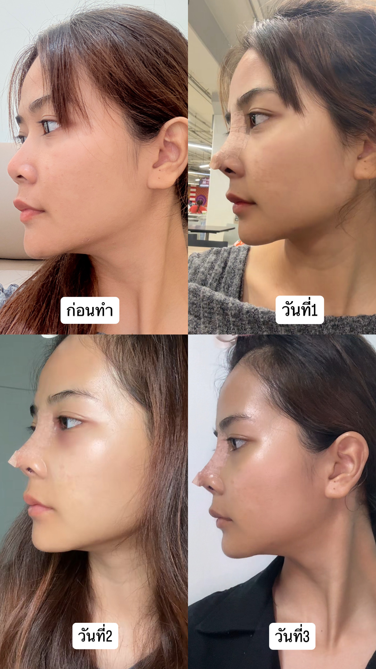 จากภาพถ่ายจะเห็นได้ชัดว่า จมูกมีความโด่งพุ่งขึ้นอย่างเป็นธรรมชาติ เข้ากับใบหน้ามากขึ้นตั้งแต่หลังทำทันทีเลยค่ะ