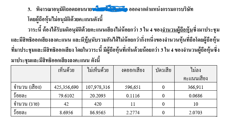 ต่อให้เป็น มติพิเศษ หรือว่า ผู้ถือหุ้นที่มีคะแนนเสียงมากกว่าพลาด เป็นเฉพาะครั้งนี้ ที่ดำเนินการให้ลงคะแนนเสียงโดยใช้วิธีนับคะแนนแบบนี้