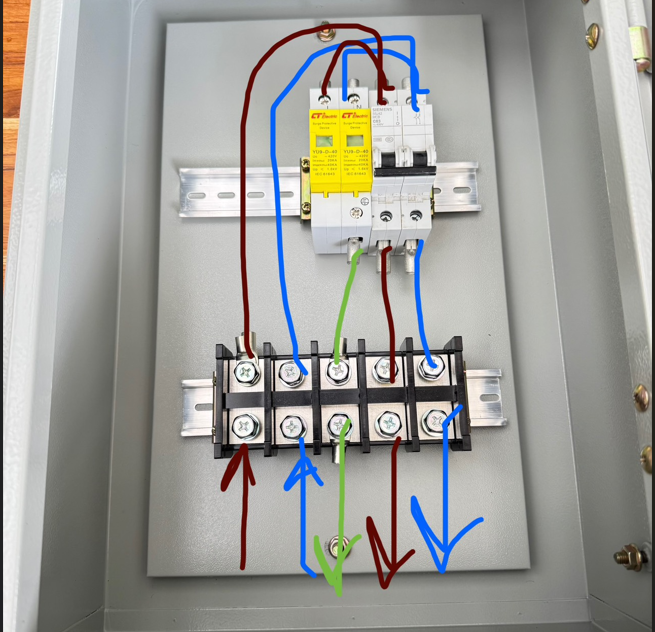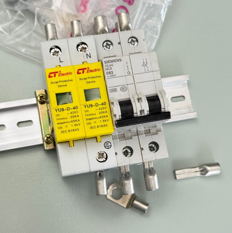 เข้าหางปลาสายไฟเบอร์ 25 เข้าเบรกเกอร์ และ SPD แบบนี้ปลอดภัยไหมครับ ขอคำแนะนำ