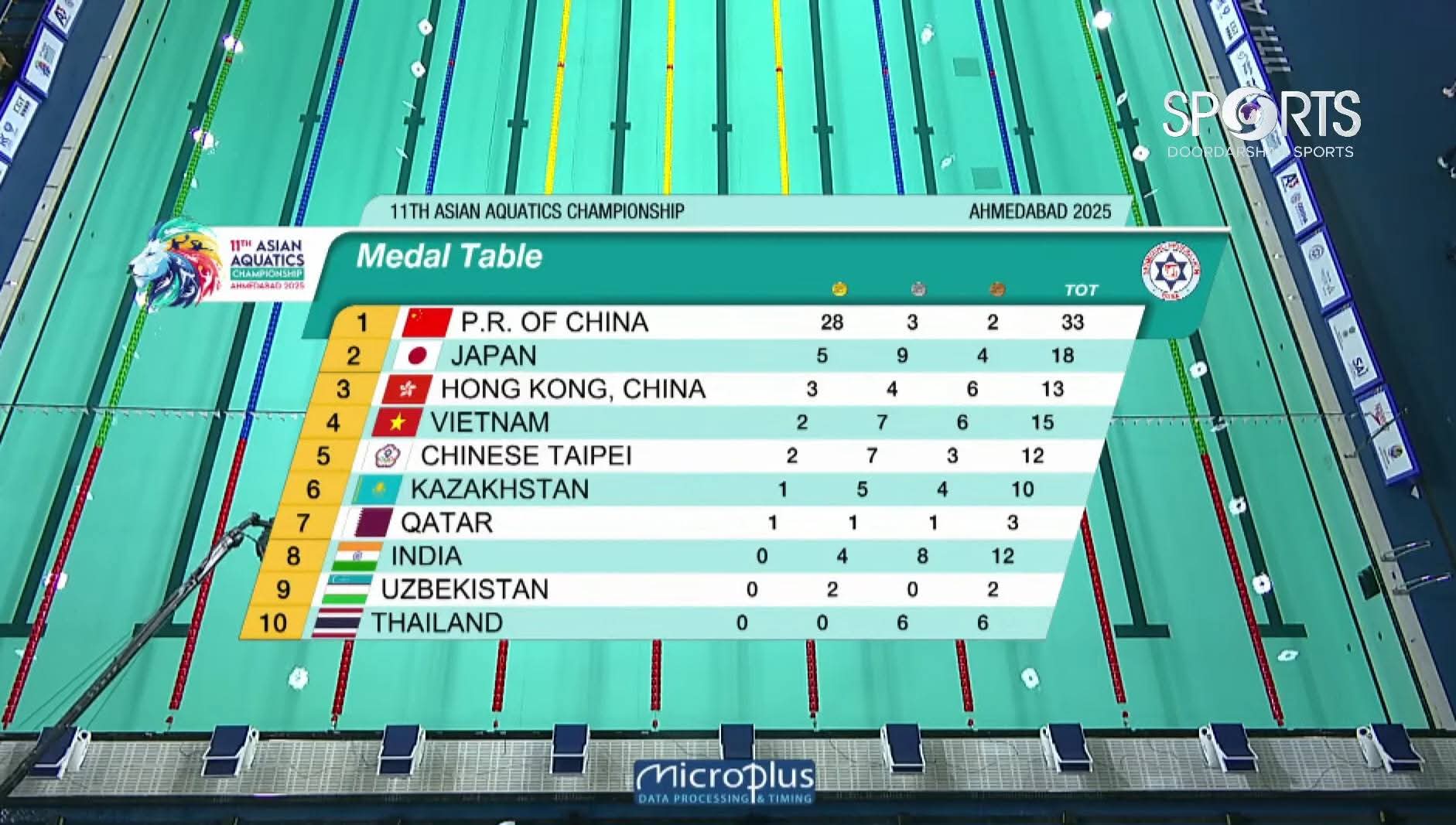สรุปเหรียญว่ายน้ำชิงแชมป์เอเชีย ผ่านไปสองวัน