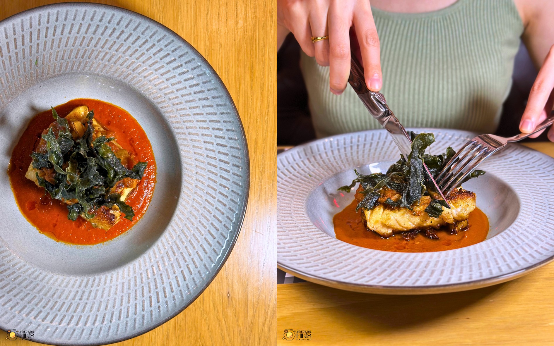 Smokey Atlantic Cod With Red Seafood Sauce (790 ++) ปลาค็อดแอตแลนติกเนื้อแน่นฉ่ำ ย่างในเตา Josper ให้ได้กลิ่นควันหอมอ่อนๆ จับคู่กับซอสซีฟู้ดสีแดงเข้มสไตล์สเปน รสกลมกล่อม เปรี้ยว เค็ม หวานครบถ้วน เป็นจานที่ทั้งหรูและสดชื่น