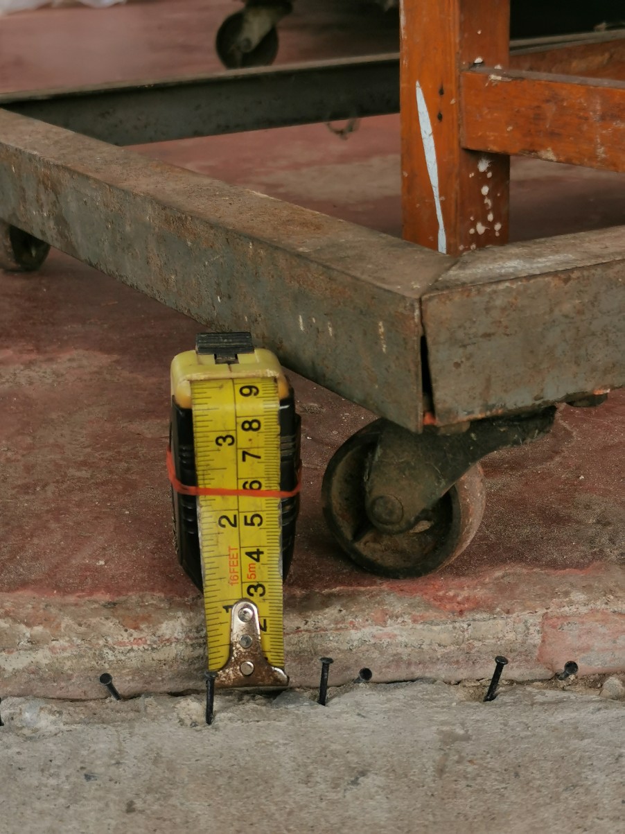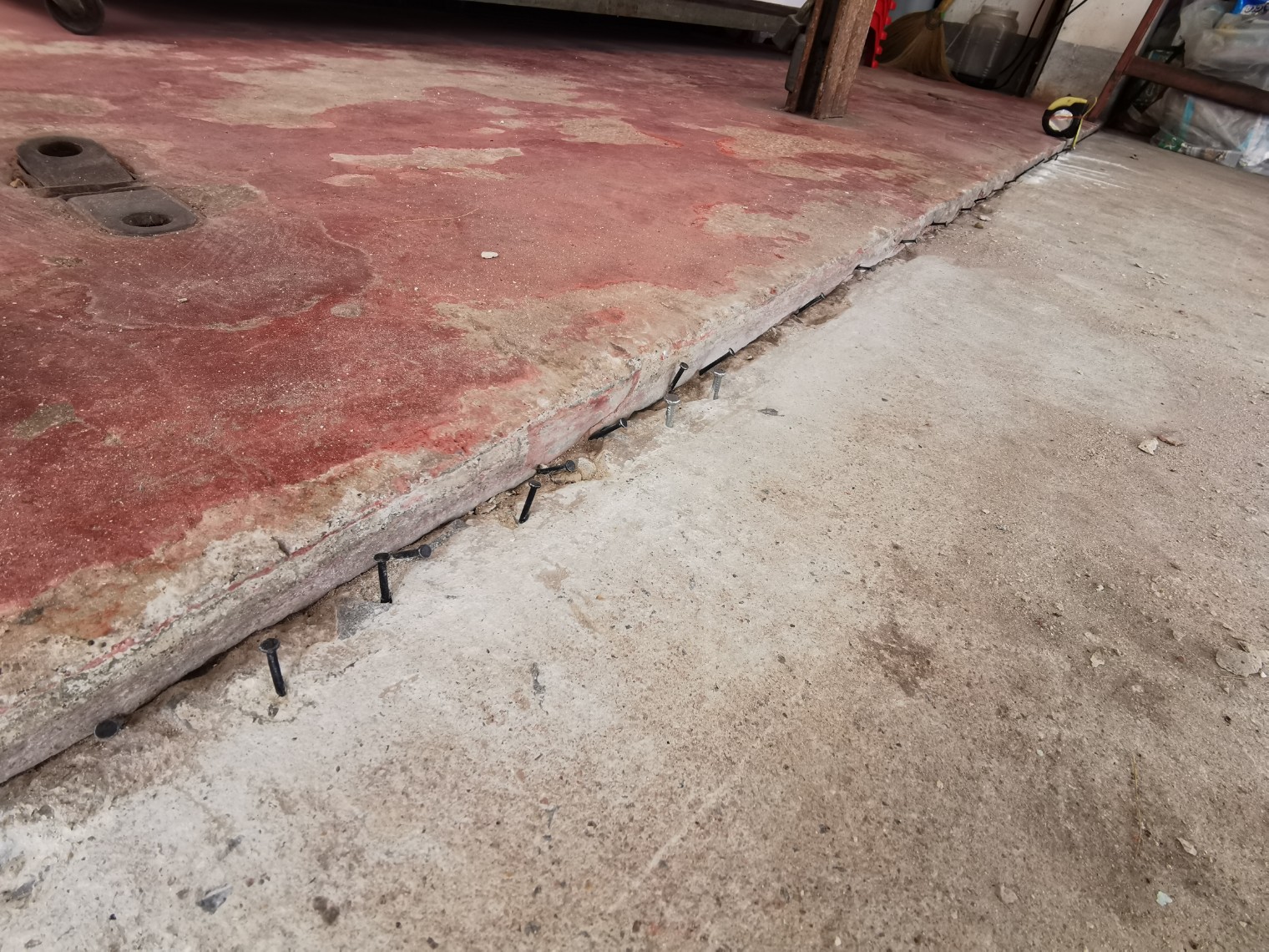 พื้นรอยต่ออาคารกับพื้นด้านนอกเริ่มทรุดแต่จะมีรถเข็นดังรูปเข้า-ออก จึงอยากเชื่อมรอยต่อแล้วมีสโลปทางลาดน้อยๆ จะใช้ปูนซีเมนต์ก็ไม่น่าจะเกาะทนเคยเห็นหลุดเป็นแผงเลย จึงมีความคิดใช้ยางมะตอยสำเร็จรูปแล้วฝังตะปูเผื่อยึดเกาะ ลองทำดูแล้วยางมะตอยแห้งช้ามาก(ใช้รุ่นแห้งไวยึดเกาะทนแล้ว) รอยต่อยาวประมาณ20เมตร เริ่มจากตอกตะปูคอนกรีตสีดำขนาดตามงาน3ขนาดพอมาเจอหินเริ่มใช้เครื่องมือขุดเจาะหนัก🤭 เอาสว่านเจาะนำเอาตะปูคอนกรีตตัวอ้วนมาใช้ปักเพื่อให้มีหลักยึดเกาะบ้าง ดูรู้สึกชักบานปลายงานงอก จากที่ว่าใช้ค้อนตอกๆก็อยู่ต้องเอาสว่านเจาะนำใช้ตะปูตัวใหญ่ขึ้น เลยว่าต้องสอบถามและขอความรู้ความคิดเห็นจากผู้รู้ในพันทิปมั่งดีกว่า